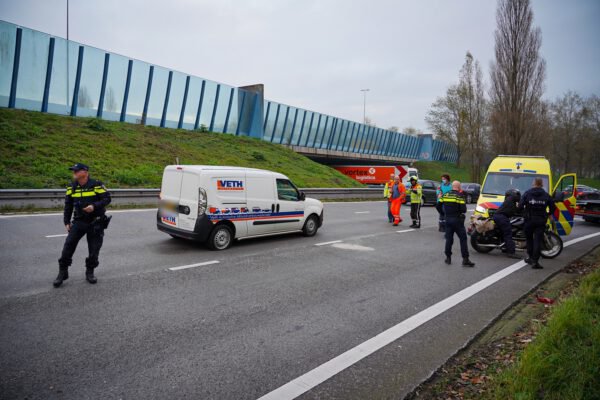 Rond 16.00 uur werden de hulpdiensten gealarmeerd. Ter plaatse bleek een motorrijder tussen het verkeer hebben gereden, waarna hij tegen een auto botste. Hij verloor daarna de macht over het stuur en kwam tegen een andere bestelauto tot stilstand.