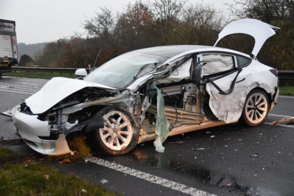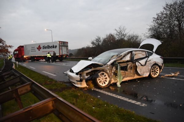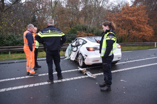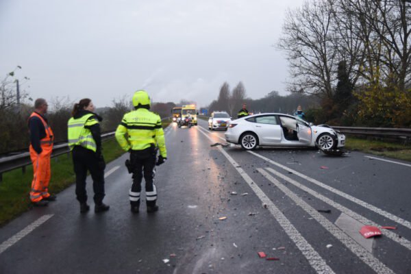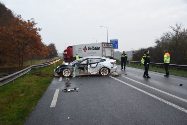 Even voor 7.30 uur gebeurde het ongeval. Door onbekende oorzaak kwamen de twee weggebruikers met elkaar in botsing. De auto, een Tesla, is aan de zijkant volledig opengehaald. De politie ter plekke verklaarde dat de automobilist door onbekende oorzaak op de verkeerde weghelft terecht is gekomen. Ondanks hard remmen en uitwijken van de vrachtwagen, kon een aanrijding niet meer worden voorkomen.