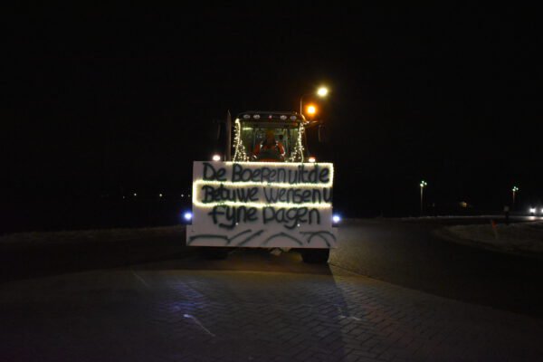Wat begon met een kleine 10 tractoren, liep op naar rond de 70 stuks. Vele mensen stonden met hun kinderen van achter de ramen te kijken naar alle versierde tractoren. Automobilisten stopte om foto’s en filmpjes te maken van de optocht.