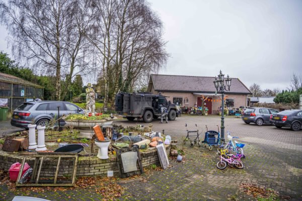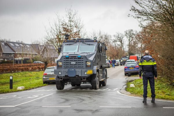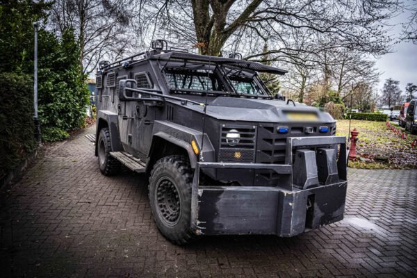LUNTEREN – Agenten van de Dienst Speciale Interventies (DSI) hebben zondagochtend een grootschalige inval gedaan bij een bedrijf aan de Klomperweg in Lunteren. De DSI zette twee zware, gepantserde voertuigen in.