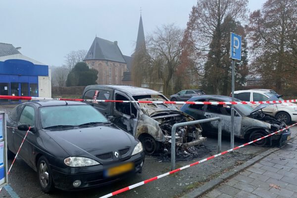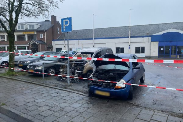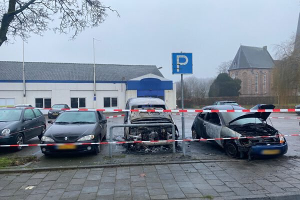 De politie heeft de auto’s met lint afgezet en er zal later vandaag onderzoek worden gedaan. De brandweer gaat uit van brandstichting.