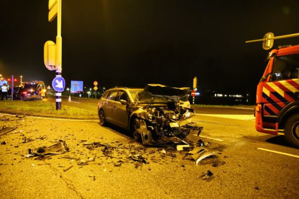 De hulpdiensten rukten even voor 02:00 uur uit voor het ongeval. Mogelijk door een voorrangsfout botsten twee personenauto’s tegen elkaar. De brandweer is ter plaatse gekomen om de voertuigen veilig te stellen. Bij het ongeval zijn meerdere mensen nagekeken door de ambulancedienst, waarna er één vrouw met onbekende verwondingen is overgebracht naar het ziekenhuis. Beide voertuigen liepen zware schade op, daarnaast lag de weg bezaaid met brokstukken en lag er olie op het wegdek.