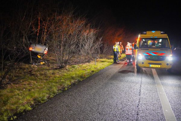 ARNHEM – Op de A12 bij Arnhem is in de nacht van zondag op maandag een auto van de weg geraakt en over de kop in de berm bossages terecht gekomen.