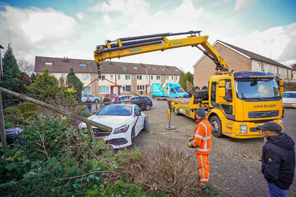 De schade aan de auto is groot. Het voertuig is geborgen door een bergingsbedrijf.