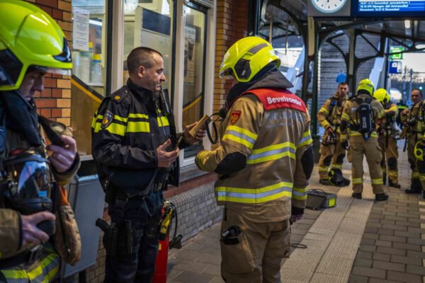 Even na 17:50 uur kwam de er een melding binnen van een brand in een trein bij het station. Ter plekke is in een toilet van de trein een rookbom afgegaan. De trein is door de brandweer ontruimd omdat er nog rook in de trein hing.