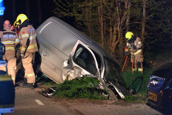 Omwonende hoorde een enorme klap en zijn direct poolshoogte gaan nemen. De bestuurder, een oudere man, is waarschijnlijk door omstanders uit zijn voertuig gehaald en in de sloot gelegd.