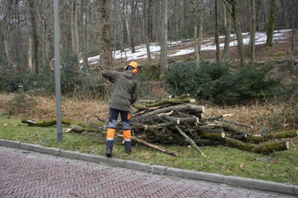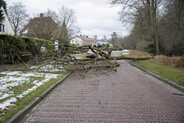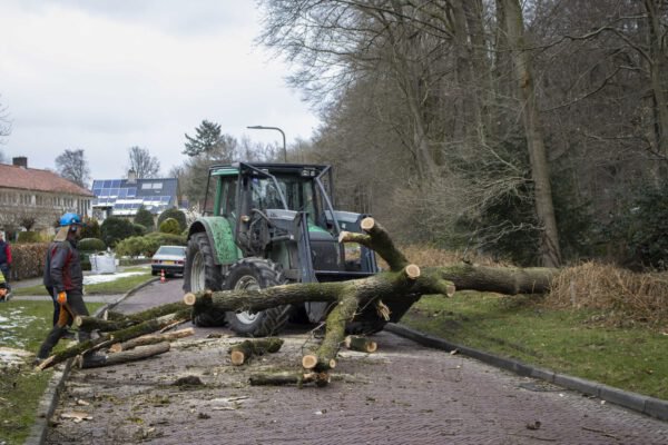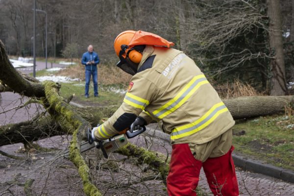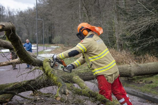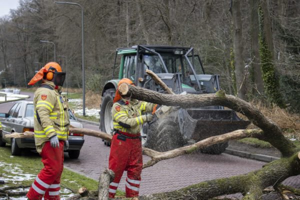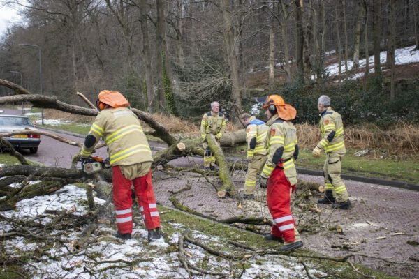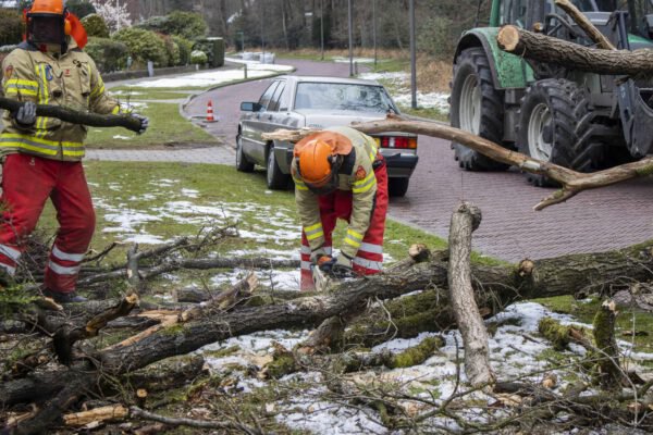 De kleingezaagde takken en de stam werden in de berm neergelegd, waarna de weg weer begaanbaar was.