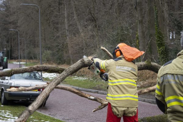 Om 12:35 uur werd de brandweer gealarmeerd. Omdat het om een boom van Natuurmonumenten ging, kwamen ook zij ter plaatse. De brandweer heeft de takken van de boom in stukken gezaagd. De stam werd met behulp van een tractor van de weg gehaald.