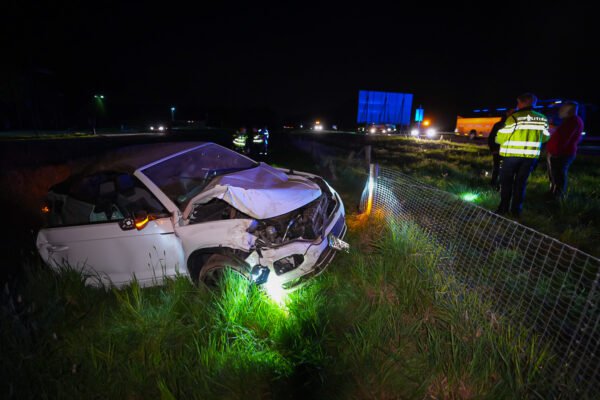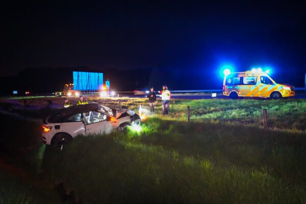 Even voor 22.00 uur gebeurde het ongeluk in de richting van Doetinchem. De automobilist raakte door onbekende oorzaak van de weg en in de berm sloeg het voertuig meerdere keren over de kop.