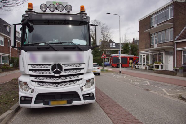 Vrachtwagen rijdt over fiets, vrouw kon net op tijd wegkomen