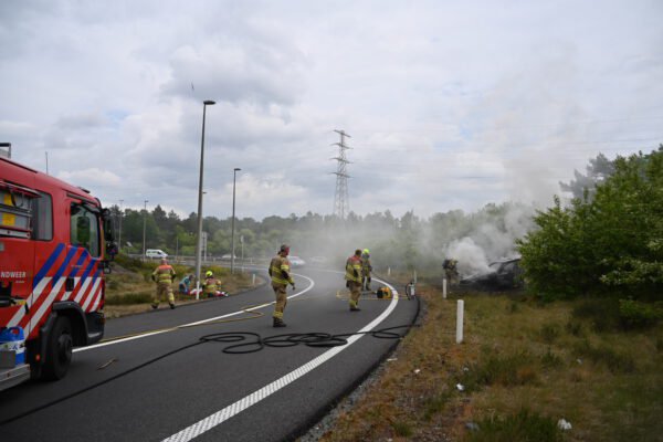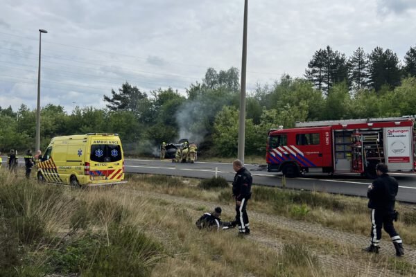 ARNHEM – Een korte achtervolging op de A50 is zaterdagmiddag geëindigd in een crash bij Arnhem. De auto crashte na het ongeval op de afrit Schaarsbergen op de A50. De auto vloog na het ongeluk in brand.