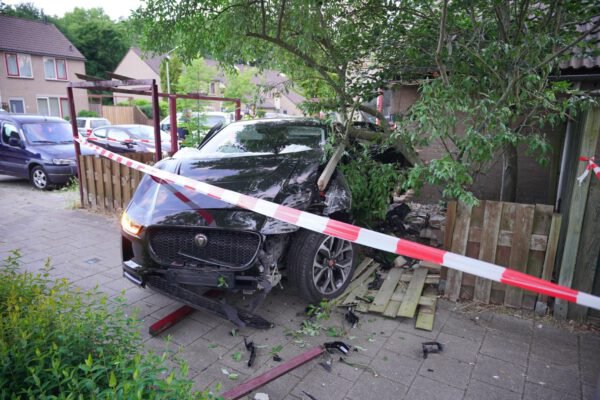 Het gebeurde even rond 20:45 uur, waarna de politie, ambulance en brandweer met spoed uitrukten. Ter plekke bleek een auto vanaf de straat, over de stoep door een hek en de tuin gereden te zijn, waarna deze vervolgens tegen de hoek van de woning is gebotst en weer een hek heeft geraakt. De auto kwam in de voortuin tot stilstand. Hoe dit kon gebeuren, is vooralsnog niet bekend. De woning stond op dit moment leeg en werd dus niet bewoond.