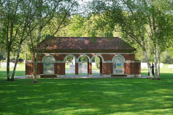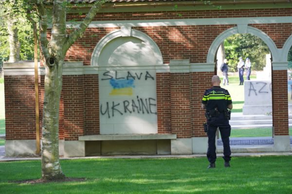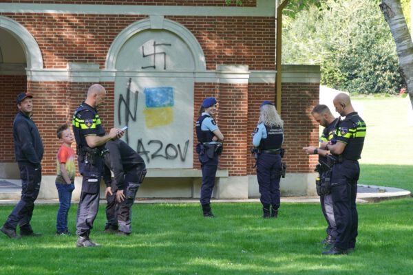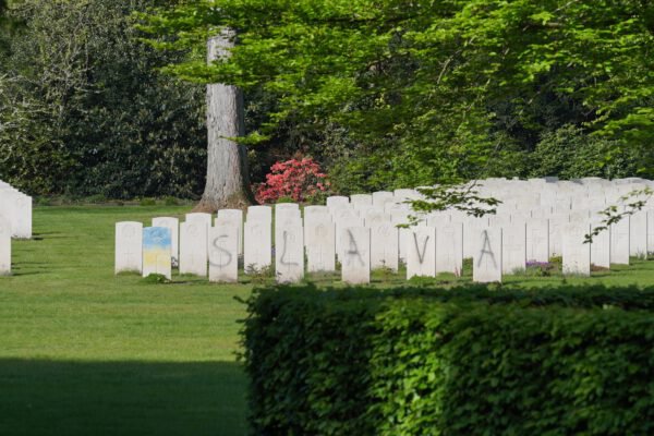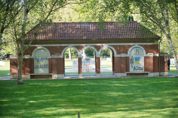 De graven zijn gemaakt van zacht natuursteen dat met veel beleid moet worden schoongemaakt. Ze zijn onder meer beklad met hakenkruizen, leuzen als ‘Fuck Poetin’ en symbolen van het Azov-bataljon.