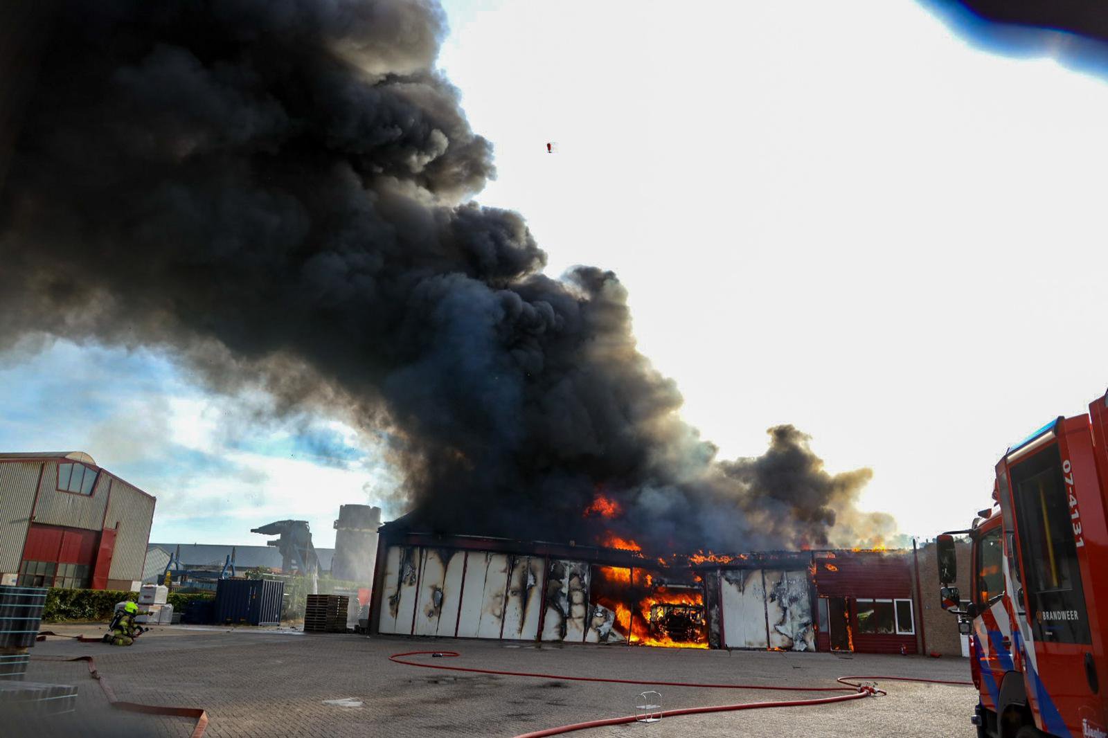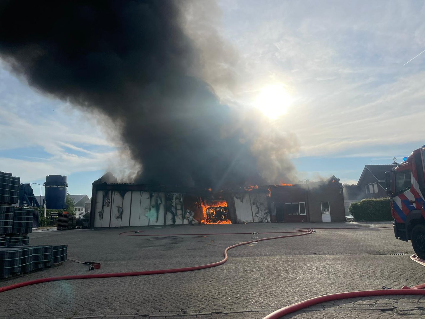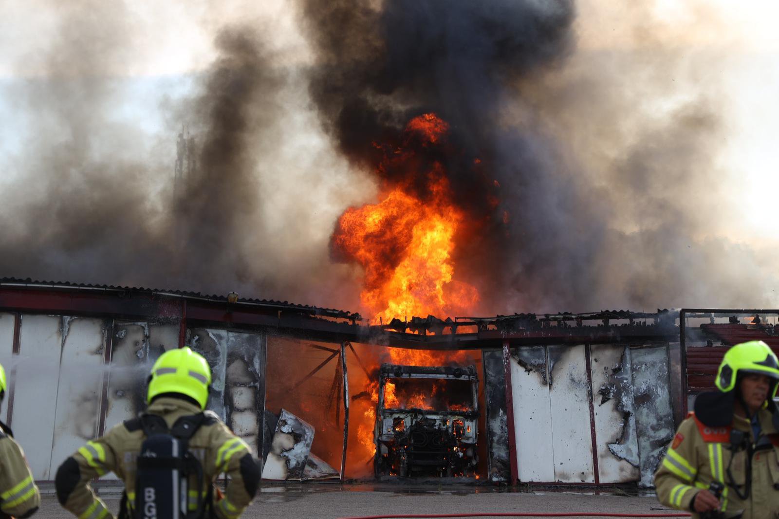 Ter plaatse bleek er een loods met daarin twee vrachtwagens compleet in lichterlaaie te staan. De zwarte rookwolken waren in de verre omgeving goed zichtbaar.