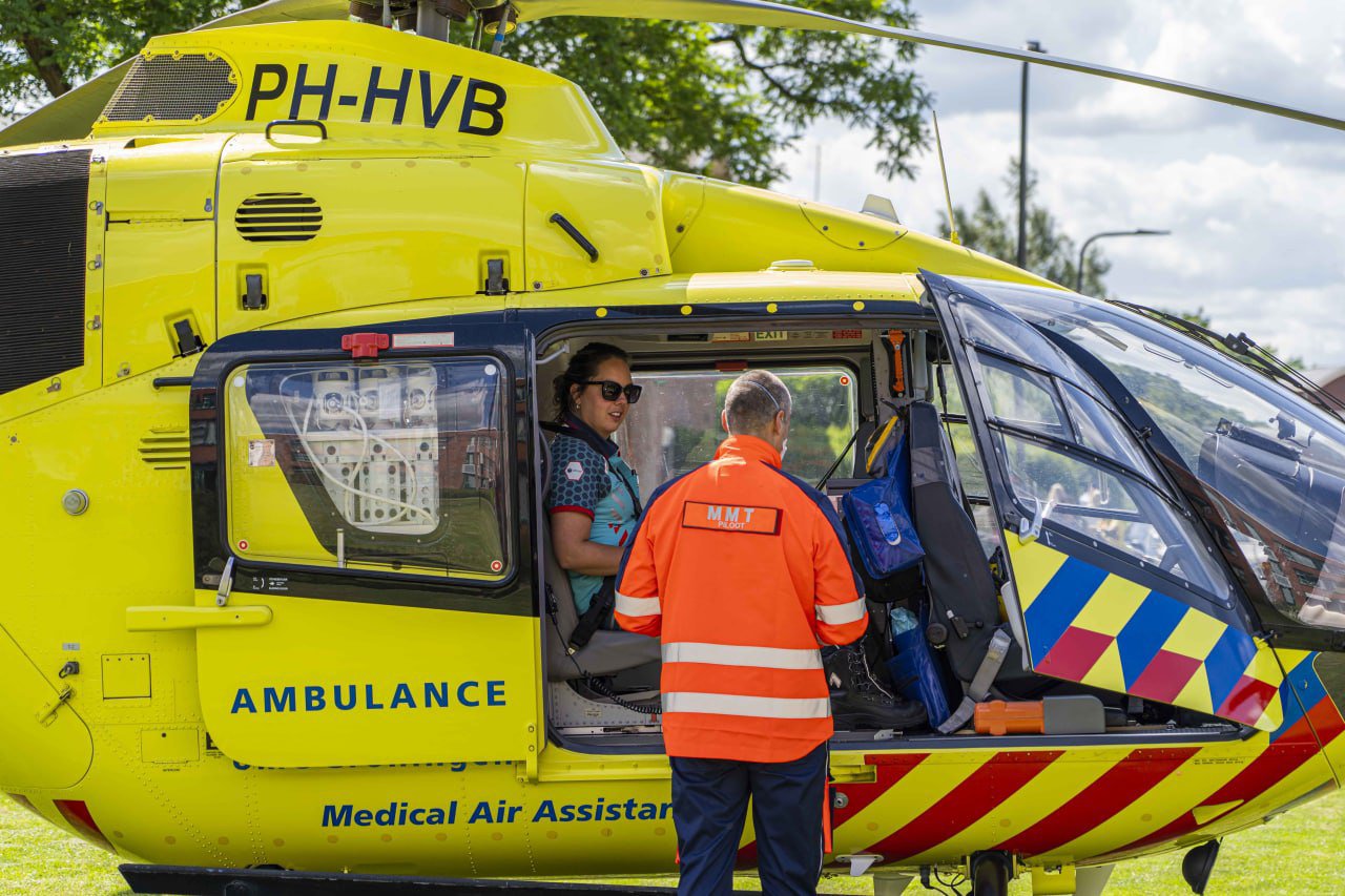 Nadat de zorg was overgedragen aan het personeel van de traumahelikopter, is besloten dat het slachtoffer per ambulance vervoerd werd onder begeleiding van de trauma-arts. Hierna is de ambulanceverpleegkundige gevraagd of deze mee wilde vliegen met de helikopter. Nog voor de helikopter opsteeg, maakte het helikopterpersoneel omstanders attent om op te passen voor opstuivend zand en andere gevaren. Ook een vrouw in een rolstoel van het verpleegtehuis kon rekenen op een persoonlijke instructie voor het opstijgen van de helikopter.