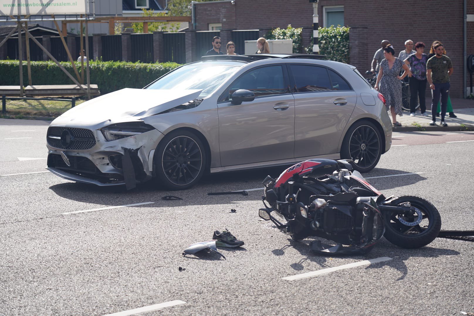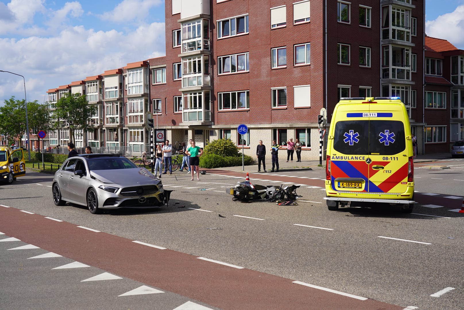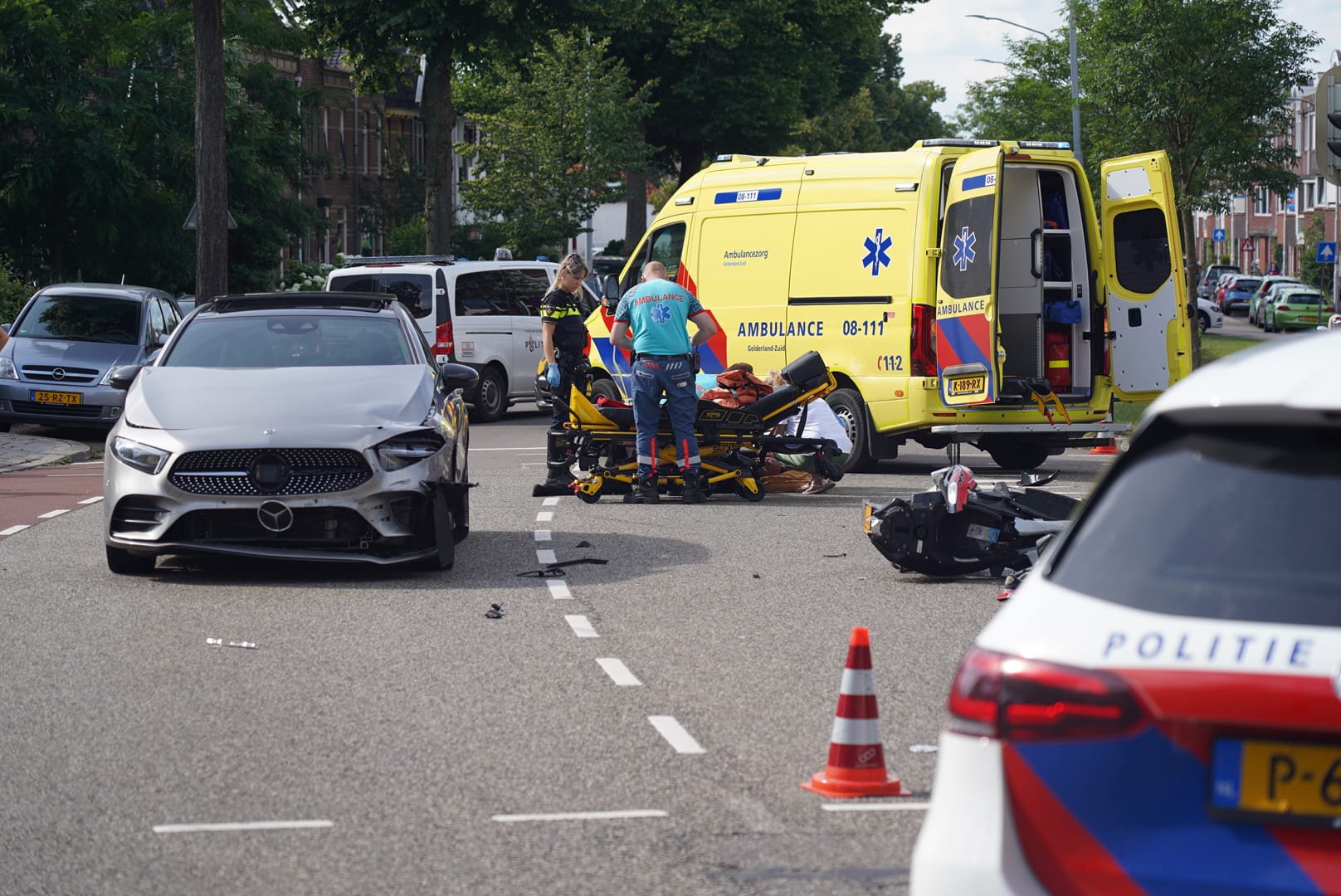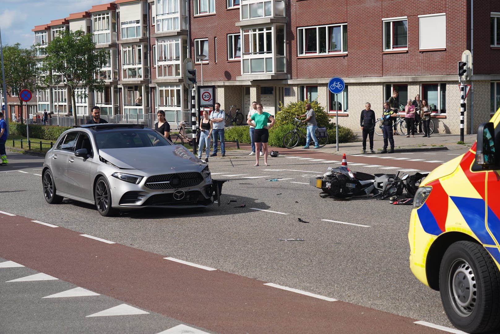 De hulpdiensten werden rond 17.30 uur opgeroepen voor het ongeval. Op het kruispunt met verkeerslichten ging het mis en kwamen de scooter en personenauto met elkaar in botsing. De scooterrijder vloog over de personenauto heen en belandde hard op het asfalt. Hij is met onbekende verwondingen met spoed overgebracht naar ziekenhuis.