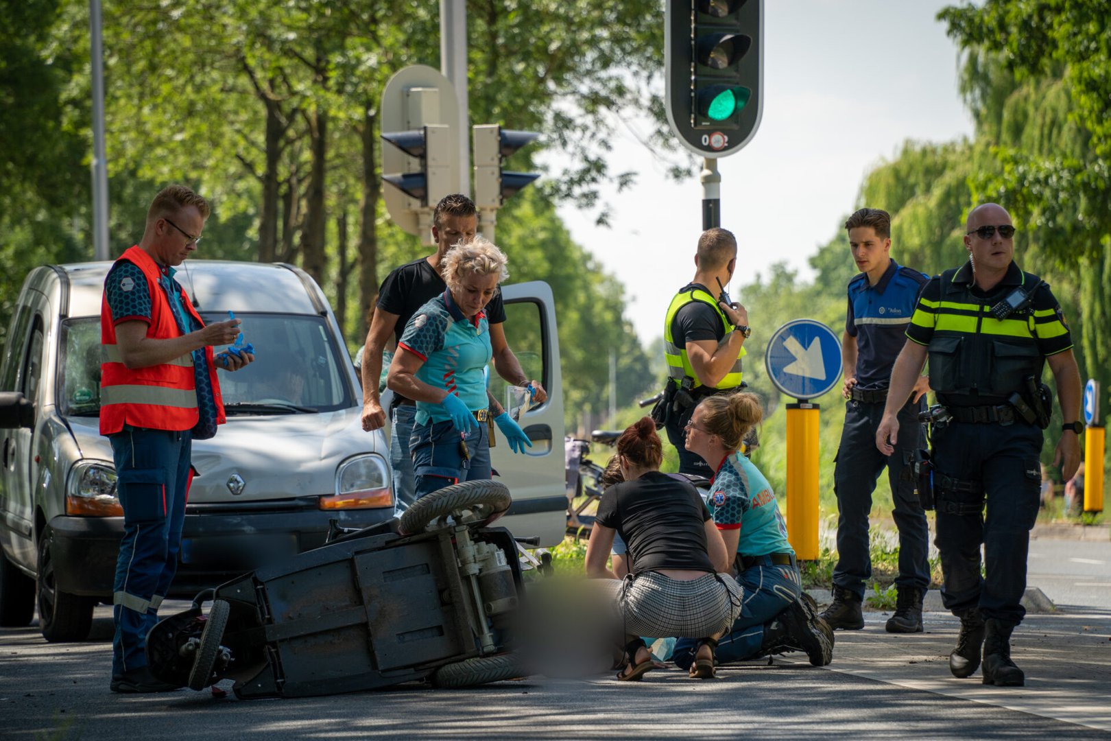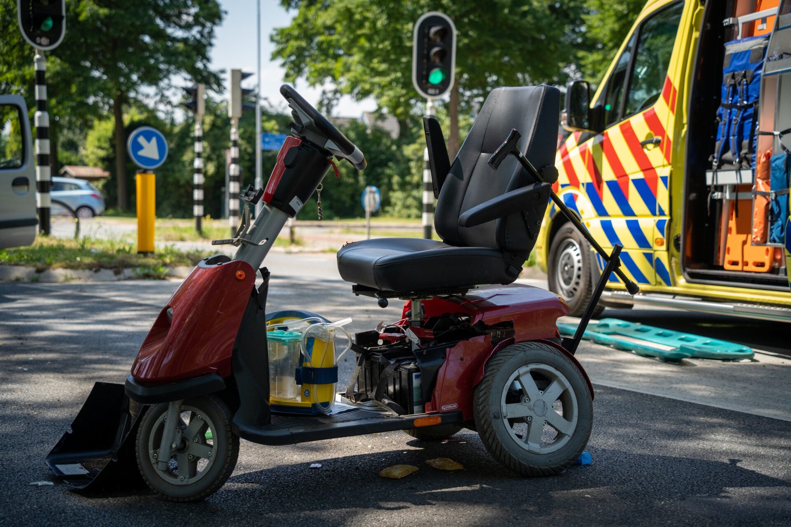Rond 12.10 uur kwam de melding binnen bij de hulpdiensten. De automobilist had mogelijk het rode verkeerslicht niet optijd opgemerkt waarna een botsing volgde. De scootmobiel kwam meters van de oversteekplaats terecht. De vrouw raakte zwaargewond aan haar been en hoofd en is met spoed naar het Radboud UMC in Nijmegen gebracht voor verdere behandelingen.
