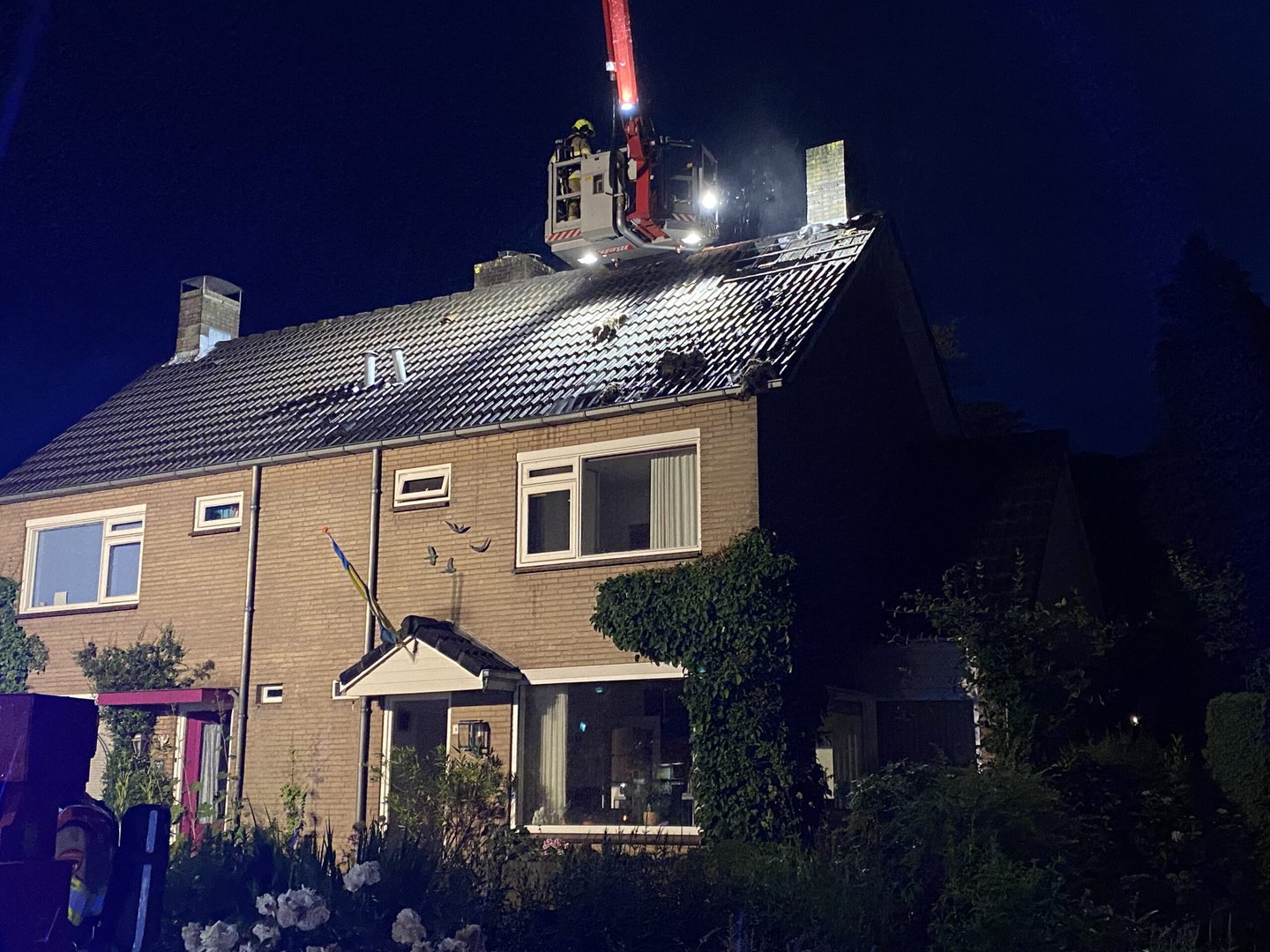 Een gedeelte van de dakpannen zijn van de woning af gehaald om het vuur te bestrijden. Het huis is voorlopig onbewoonbaar.