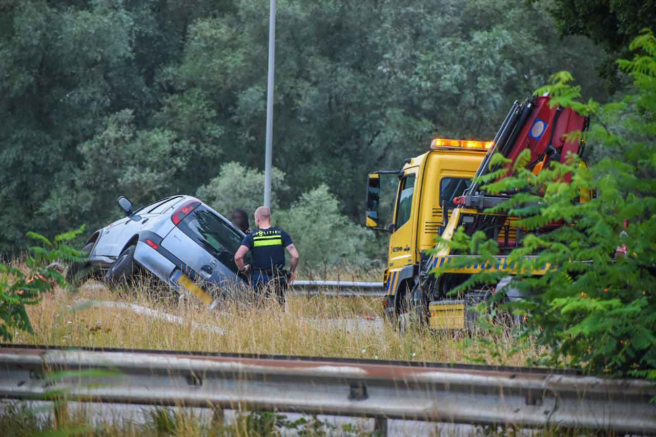 Automobilist parkeert op de vangrail in Arnhem