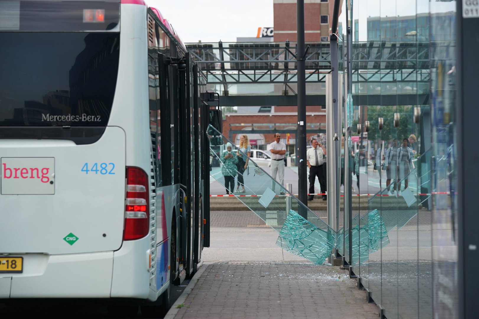 De vrachtwagen met een kraan bovenop heeft een constructie geramd waar glazen panelen aanhangen. Meerdere glazen panelen zijn losgekomen en ook is één paneel in een lijnbus gevallen. Niemand raakte gewond, zo meldt de verslaggever ter plekke. Alle perrons, volgens de verslaggever ter plekke zijn dat er 10, zijn allemaal afgezet. Handhavers en beveiligers houden iedereen op afstand vanwege de veiligheid.
