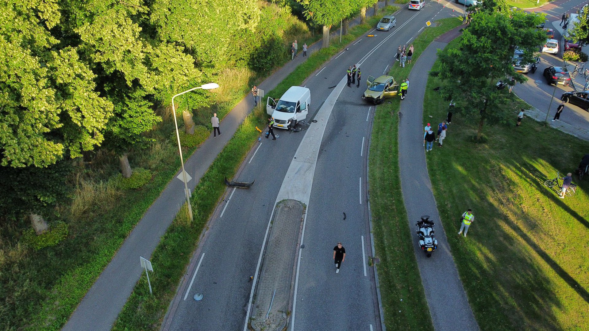 Even voor 19:40 uur vond het ongeval plaats, waarna de hulpdiensten uitrukten. Ter plekke kwam de gele Peugeot op de verkeerde weghelft terecht en is tegen een bestelbus op geklapt. Niemand raakte gewond bij het ongeval.
