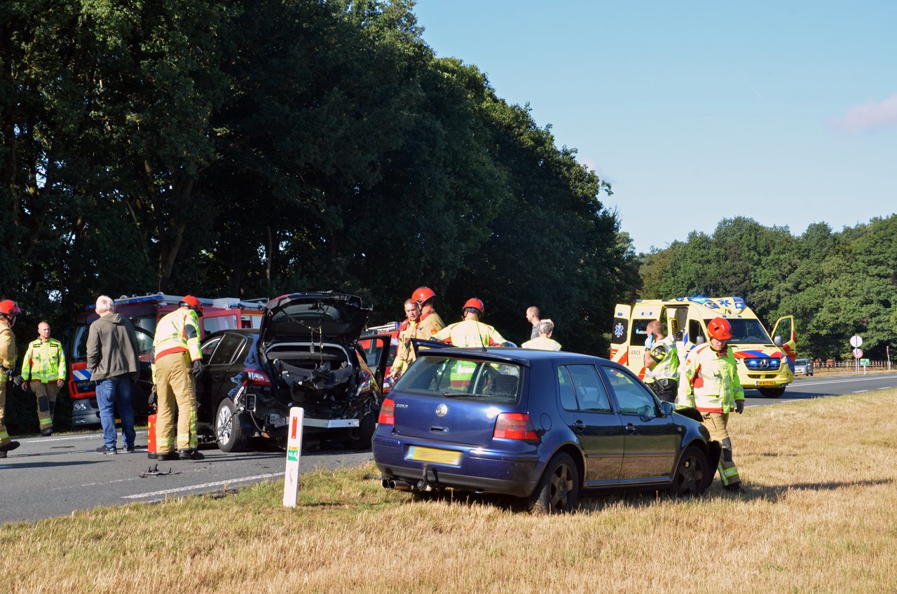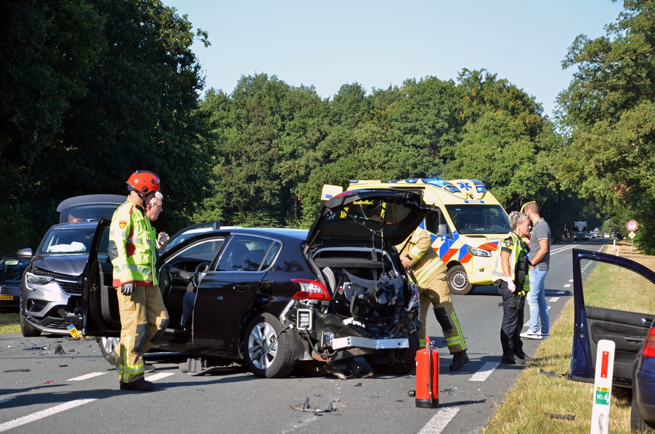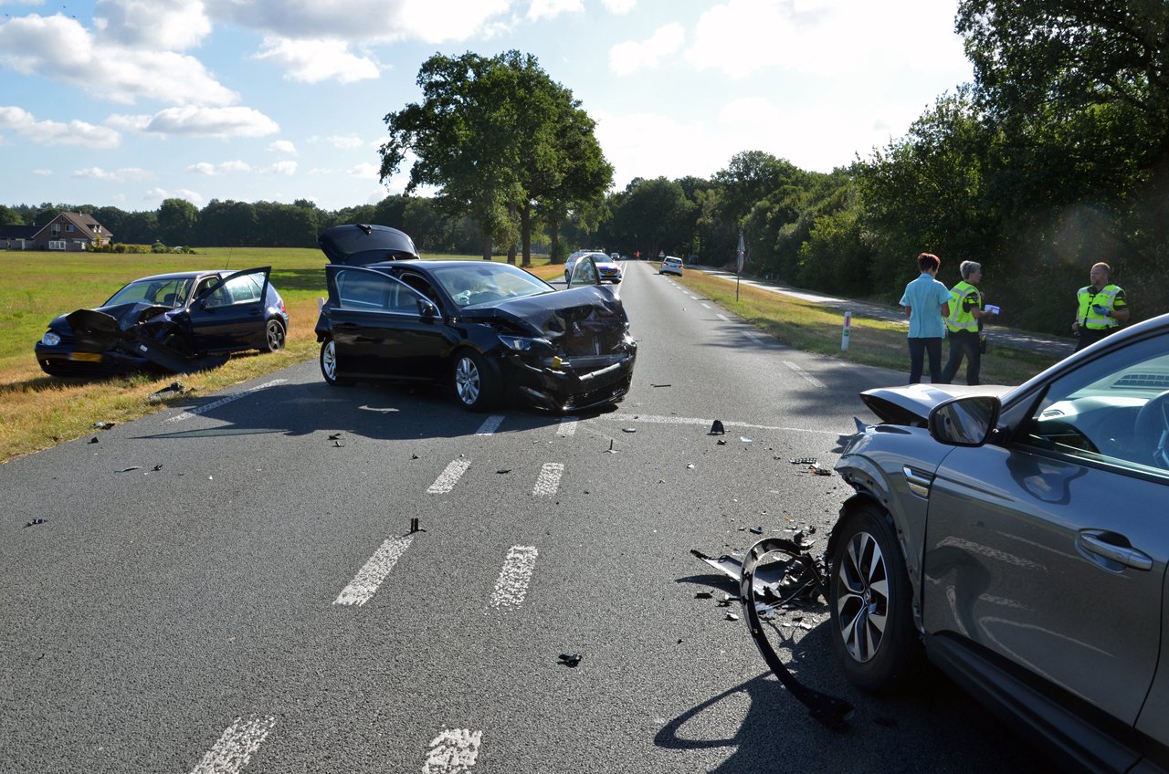 Het ongeluk gebeurde kort na 9.30 uur. Een personenauto wilde vanuit de richting Lochem links af slaan om naar een dierenopvang te rijden. Een achteropkomende bestuurder zag dit te laat en botste op zijn voorganger. De auto schoot door en kwam frontaal in botsing met een tegenligger. Daarachter reed nog een taxi, welke de voorligger iets schampte. Bij het ongeluk raakte een kindje betrokken, maar bleef ongedeerd. Van de brandweer kreeg het jongetje een traumabeertje.