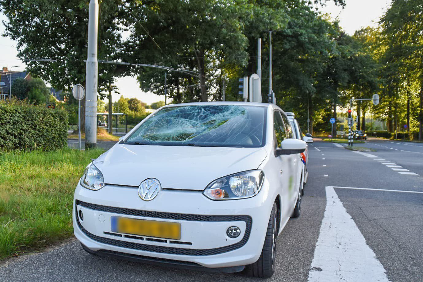 Het ongeval gebeurde 18.20 uur, waarna omstanders 112 belden. De automobilist, komende vanuit de Bakenbergseweg, wilde linksafslaan naar de Schelmseweg. Toen ze groen verkeerslicht had, reed ze weg en kwam plots een wielrenner de Schelmseweg naar beneden rijden richting Oosterbeek. Een harde klap volgde met een verbrijzelde ruit tot gevolg. De wielrenner reed door het rode verkeerslicht, zo bevestigde de politie ter plekke. ‘Mogelijk zag hij het verkeerslicht slechter door laagstaande zon.’