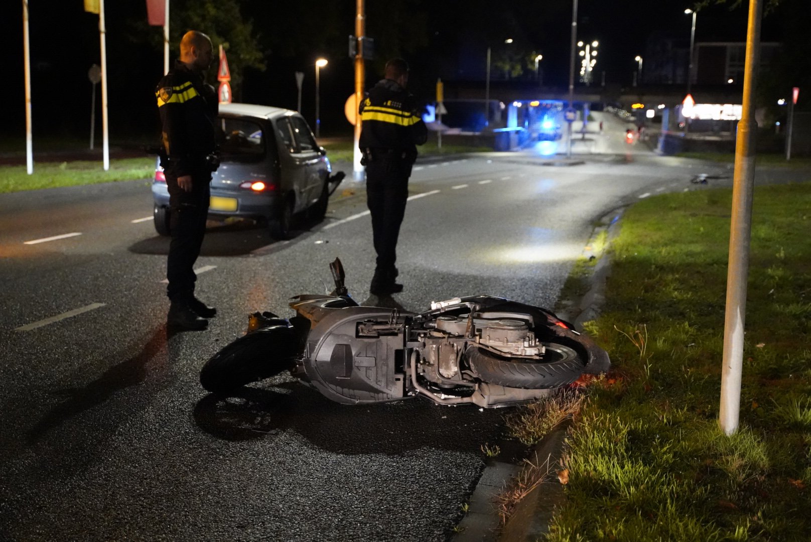 De scooterrijder is met de ambulance naar het ziekenhuis vervoerd. De automobilist kwam met de schrik vrij. Aan beide wegen is enige tijd verkeershinder geweest.