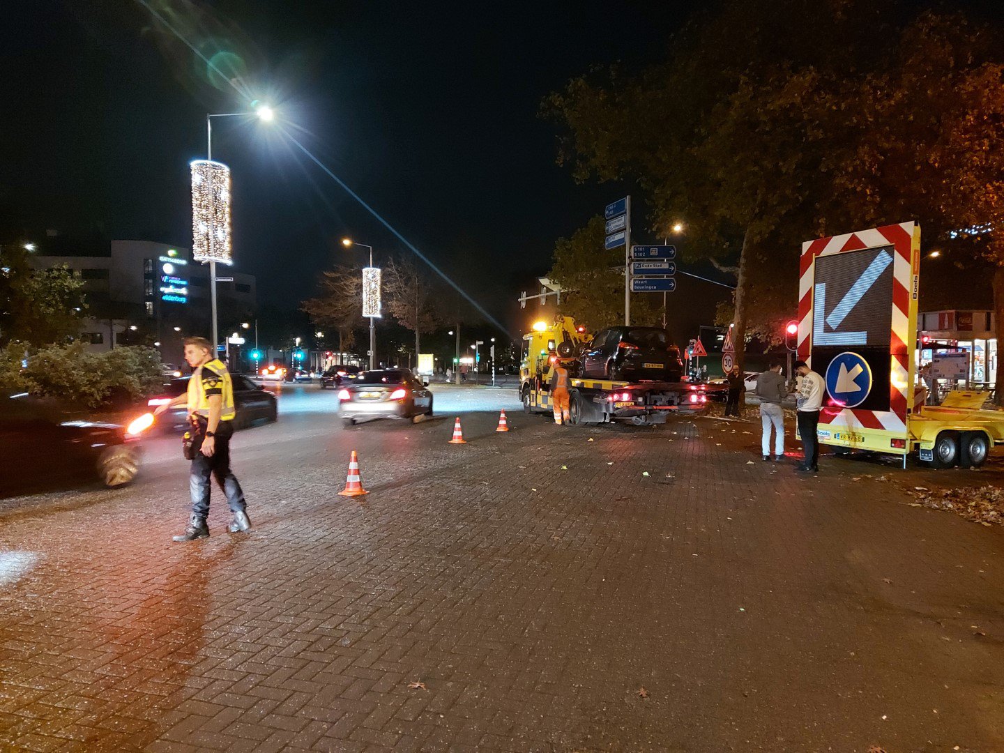 Doordat een deel van de weg op het plein was afgezet, heeft er enige tijd wat verkeershinder plaats gevonden. De auto is door een berger weg gehaald en de weg is weer vrij.