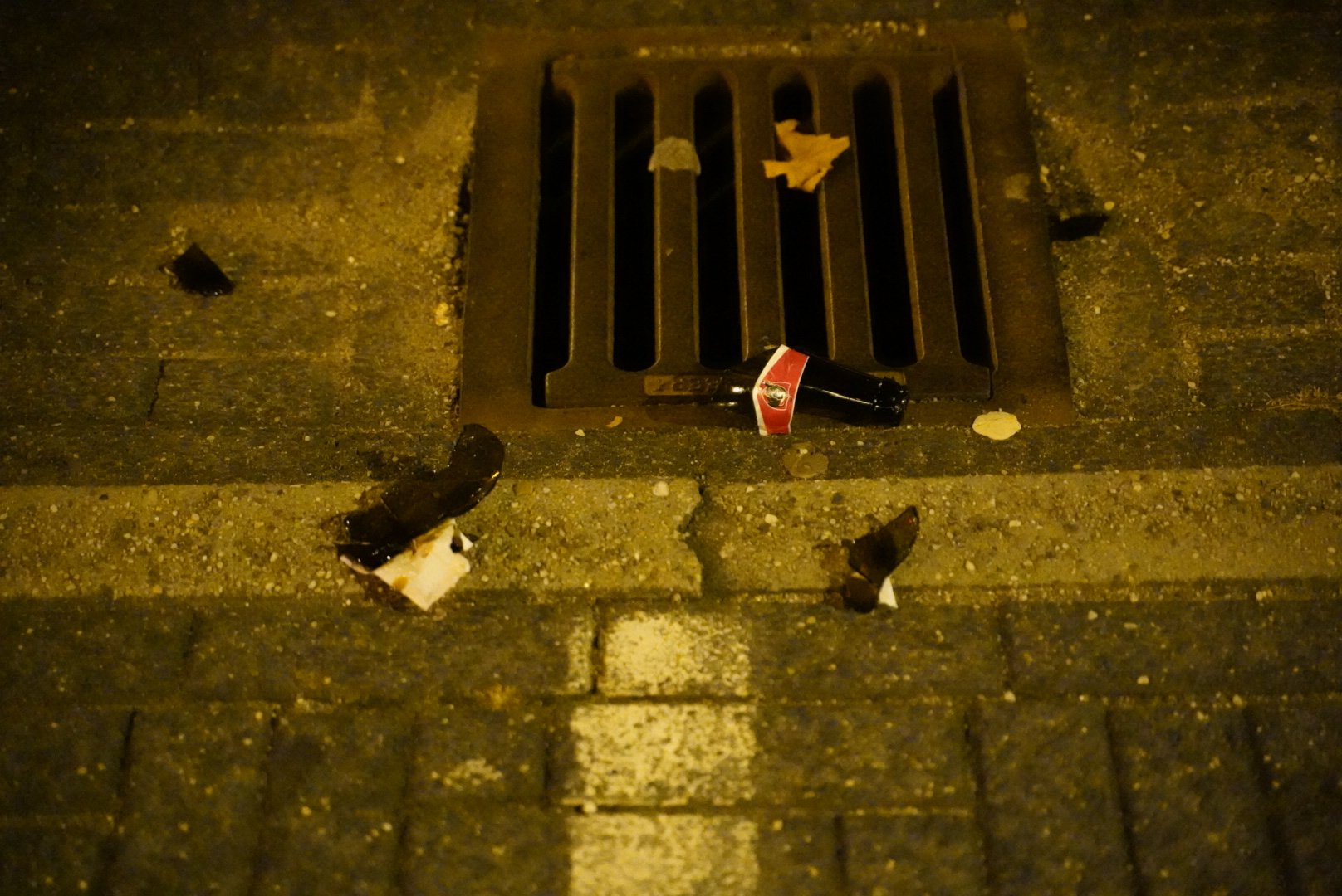 De agent naar wie een bierflesje gegooid is, is niet gewond geraakt.