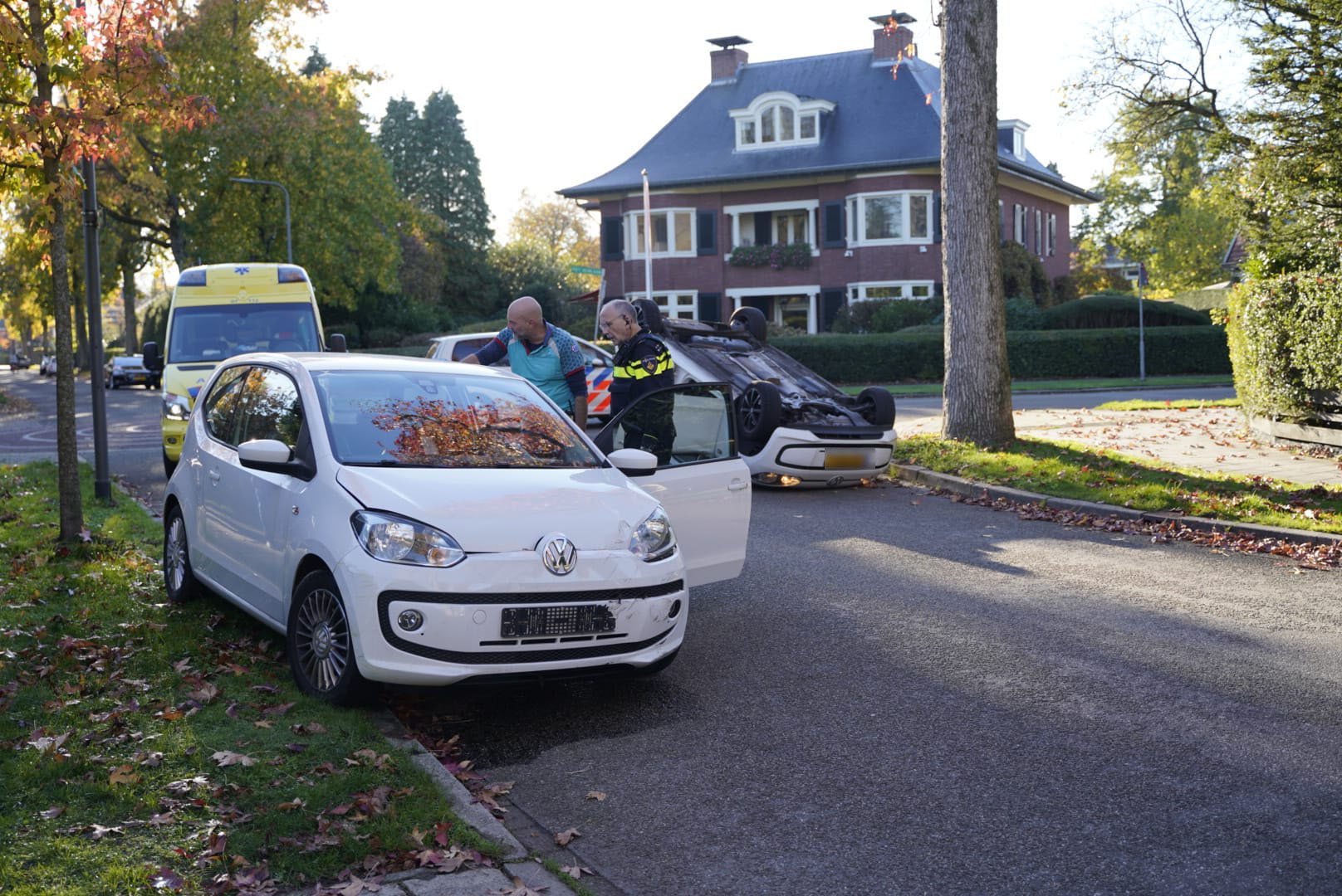 VELP – Op de kruising Pietheinlaan met de Hogeweg in Velp is zondagmiddag een auto over de kop geslagen bij een ongeluk in de woonwijk.