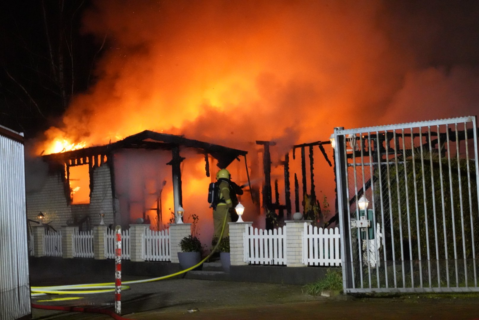 Rond 19:40 kwam de melding bij de meldkamer binnen. Al snel werd er opgeschaald naar ‘Middelbrand’. Ter plekke stond een chalet volledig in de brand. In de woning was, op het moment van de brand, niemand aanwezig.