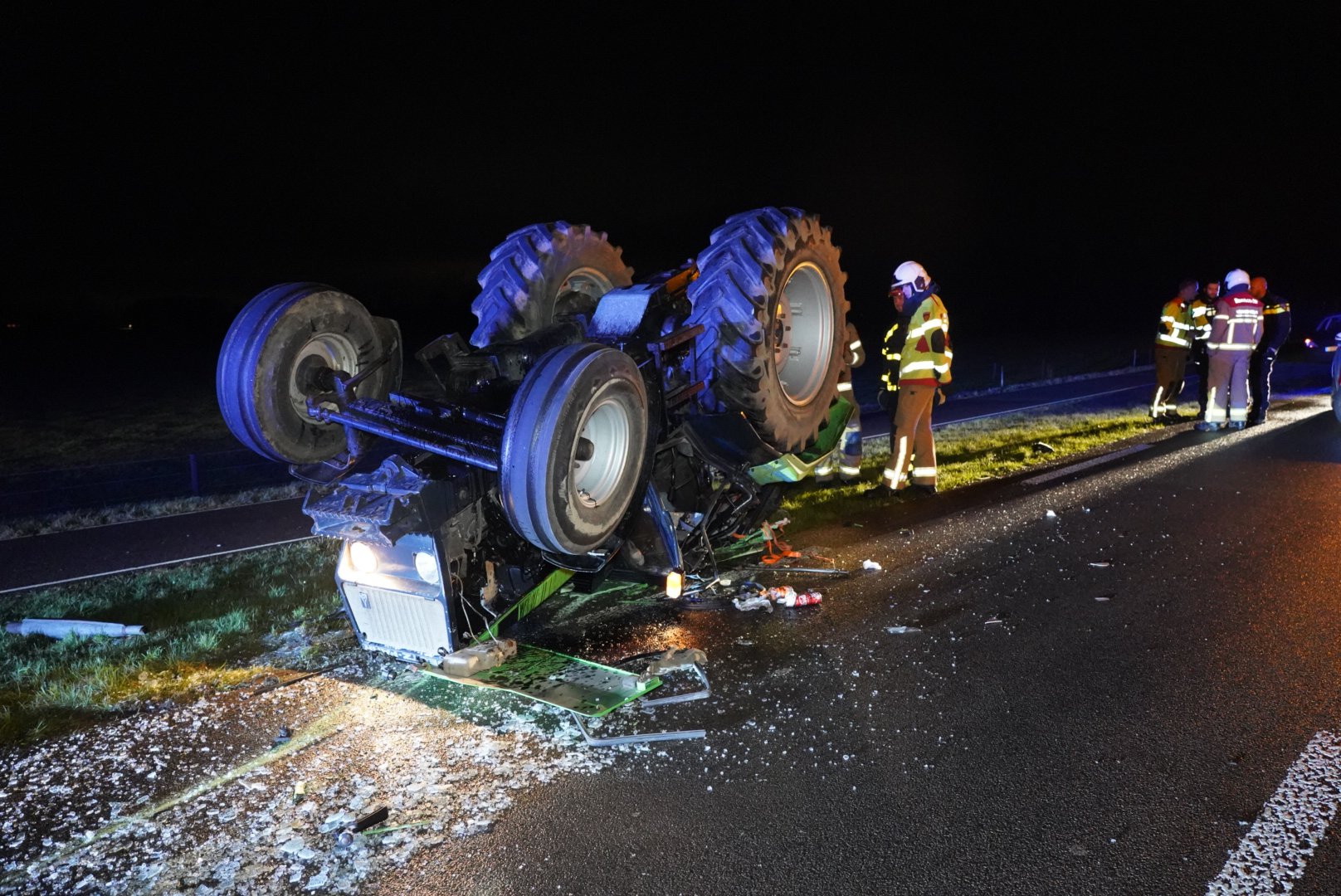 TOLDIJK – Op de Zutphen Emmerikseweg N314 bij Toldijk is vrijdagavond een tractor in botsing gekomen met een auto. De tractor belandde hierbij op zijn kop.