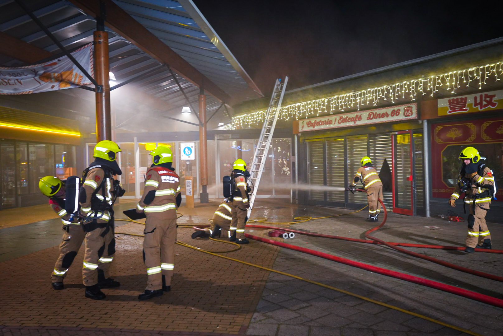 De brand ontstond in de cafetaria en sloeg snel via het dak uit. Meerdere winkels, waaronder de kapper en een Chinees restaurant, zijn voorlopig gesloten vanwege rookschade.