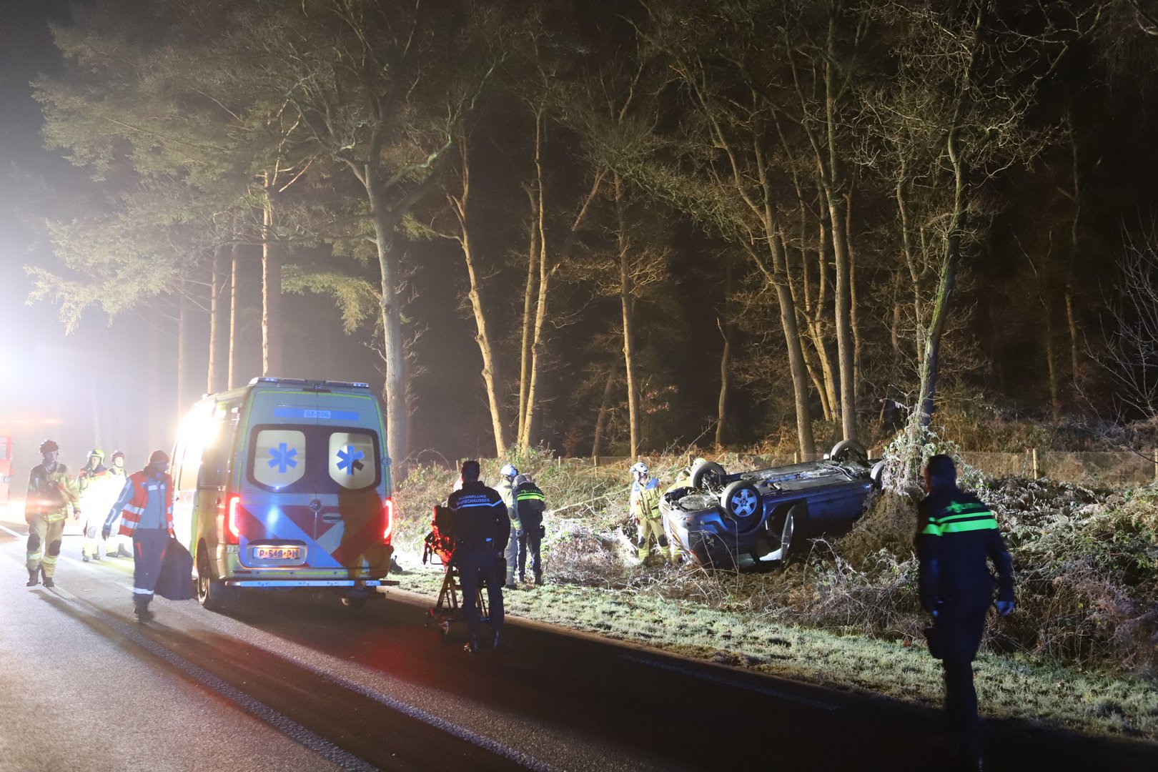 Het ongeval gebeuren omstreeks 03:15 uur. Een auto met daarin zeker één inzittende sloeg over de kop en kwam in de bosschages tot stilstand. De brandweer moest ter plekke komen om de bestuurder uit de auto te bevrijden.