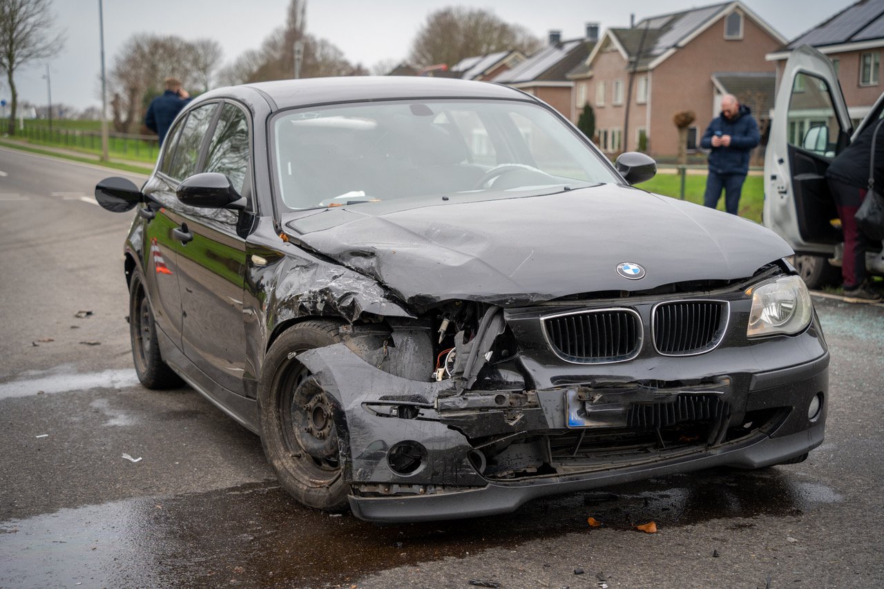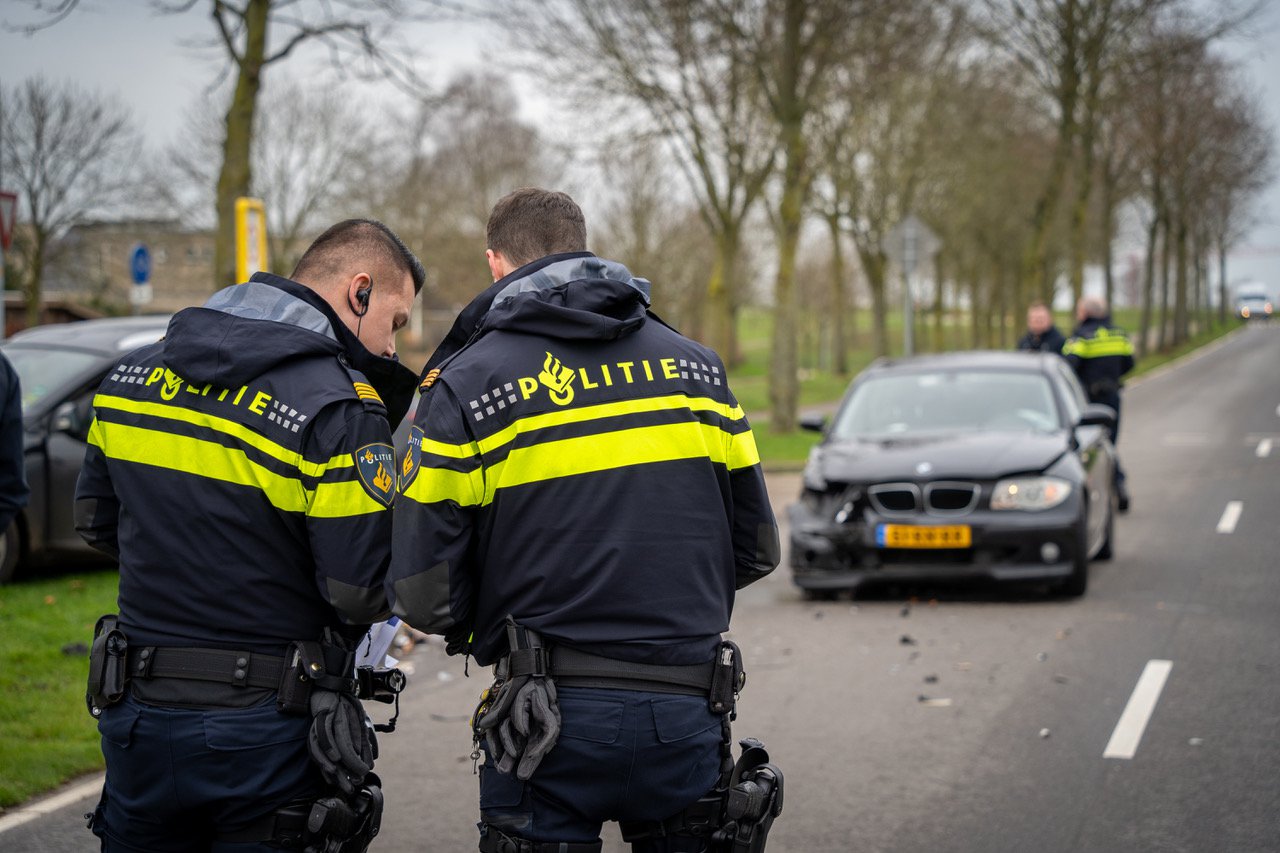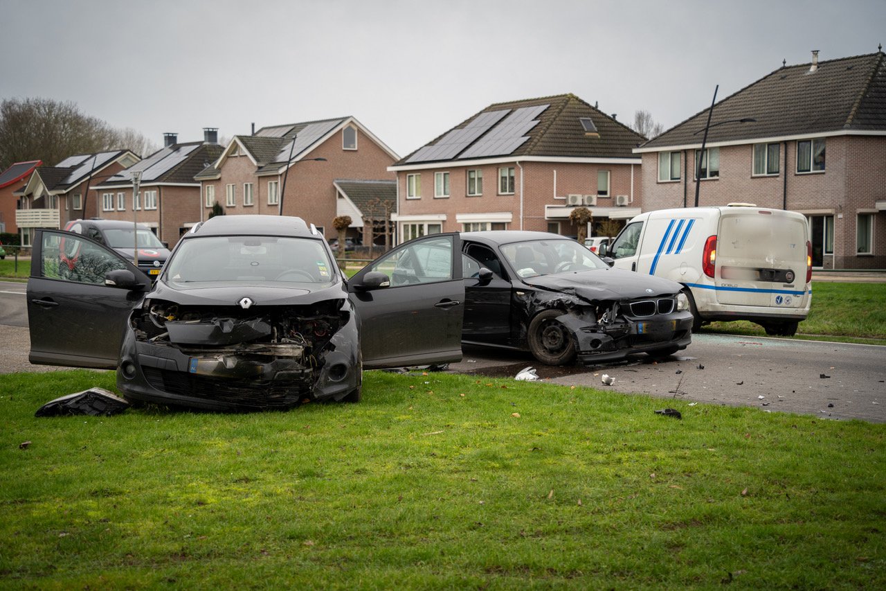 Een auto die stil stond op de kruising om de Tasveld op te draaien is van achteren aangereden door een auto die dit te laat opmerkte. De afslaande auto schoot hierbij op de verkeerde weghelft en botste frontaal op een tegemoet komende auto.