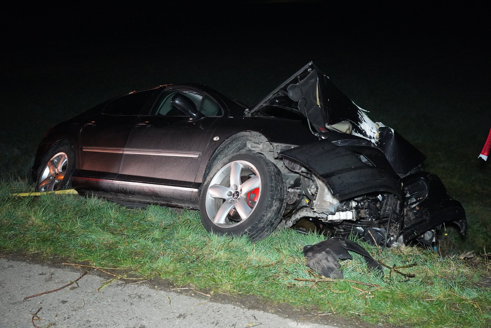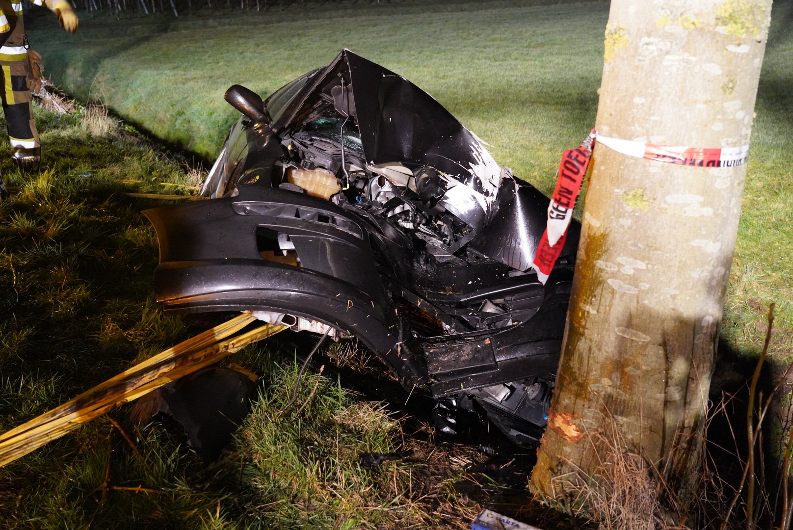 Eenmaal ter plaatse troffen de hulpdiensten een auto aan die tegen een boom was geklapt. De brandweer heeft het voertuig met spanbanden vastgezet om te voorkomen dat het in de sloot zou belanden. De bestuurster zat nog in het voertuig en moest door de brandweer bevrijd worden. Vervolgens is zij met onbekend letsel naar het ziekenhuis vervoerd.