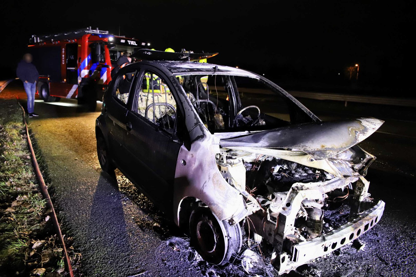 Bij aankomst van de brandweer stond de voorzijde van de auto in lichterlaaie en kon niet voorkomen worden dat de auto volledig afbrandde.
