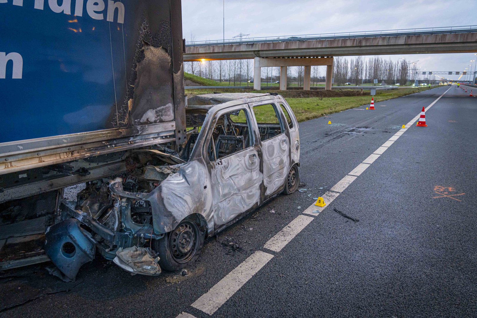 Het ongeval gebeurde rond 05:30 uur, waarna alle hulpdiensten zich richting het ongeval spoedde. Ter plekke bleek een auto achterop een vrachtwagen te zijn geknald, daarbij is de auto in brand gevlogen. Omstanders die het zagen gebeuren zijn direct gestopt en hebben het slachtoffer eruit weten te trekken, waarna de auto al snel in lichterlaaie stond. De brandweer heeft de brand geblust.