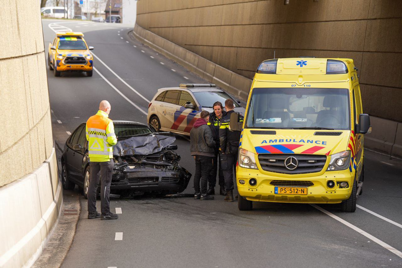 Een van de voertuigen kwam op de verkeerde weghelft terecht, waarna er een frontale aanrijding plaatsvond. Een man uit de auto raakte gewond en is per ambulance overgebracht naar het ziekenhuis.