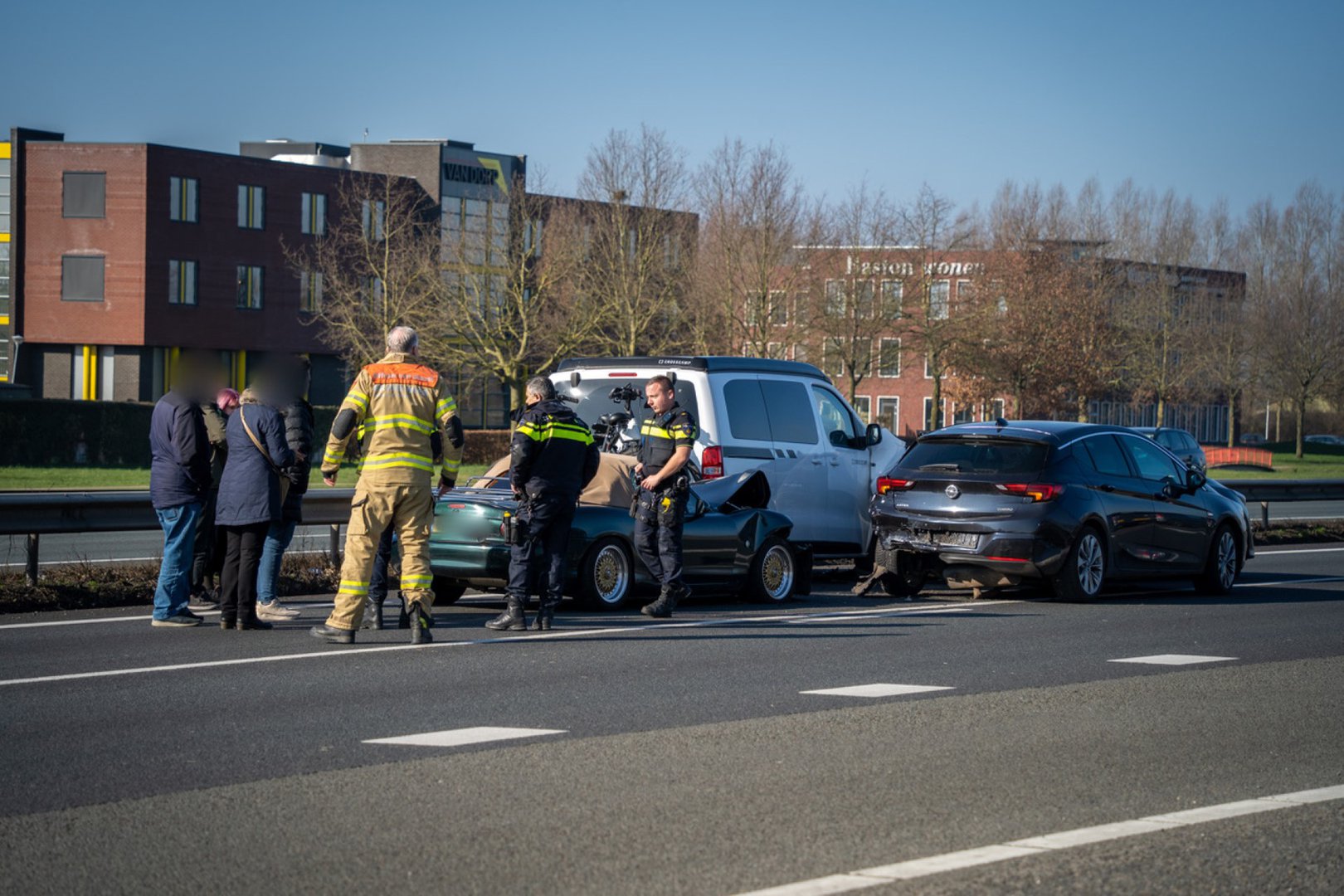 Even voor 11:40 uur vond de aanrijding plaats, waarna de hulpdiensten werden gealarmeerd. Vier auto’s klapte door nog onbekende oorzaak op elkaar. Eén van de inzittenden is ter plekke door de ambulancedienst gecontroleerd, maar hoefde niet mee naar het ziekenhuis. Alle auto’s zijn afgesleept door een bergingsbedrijf