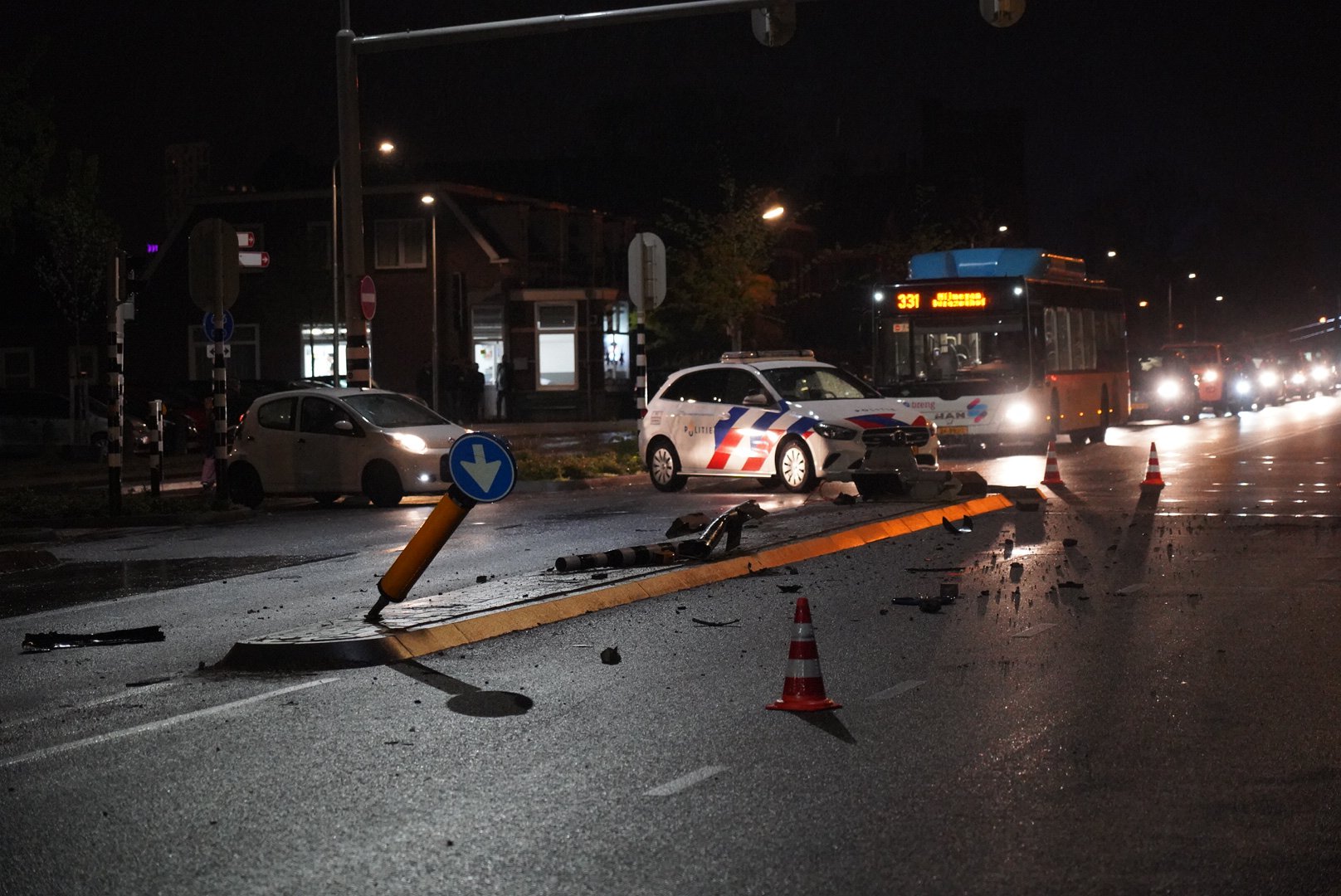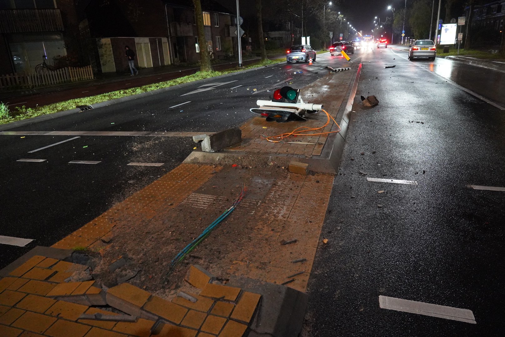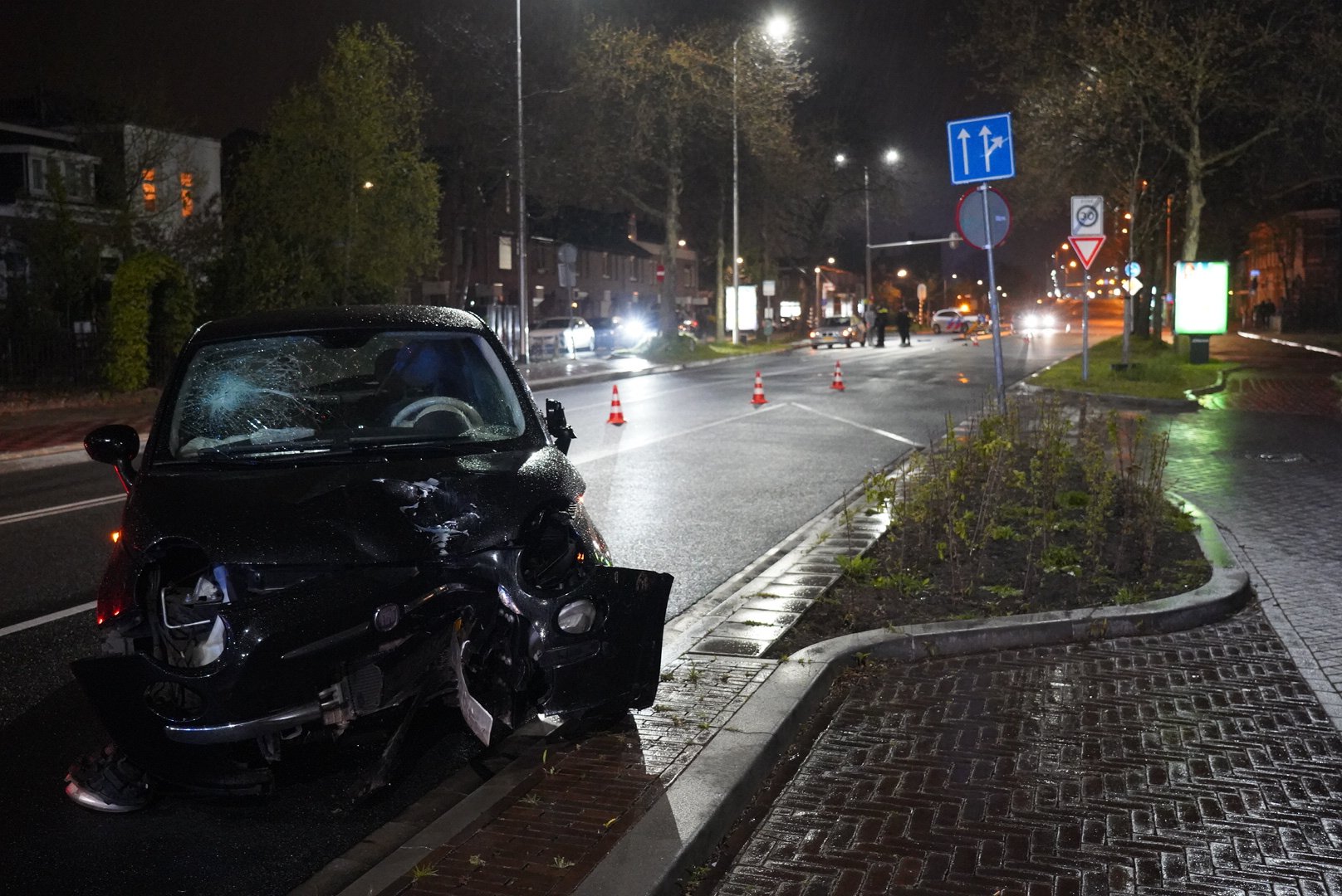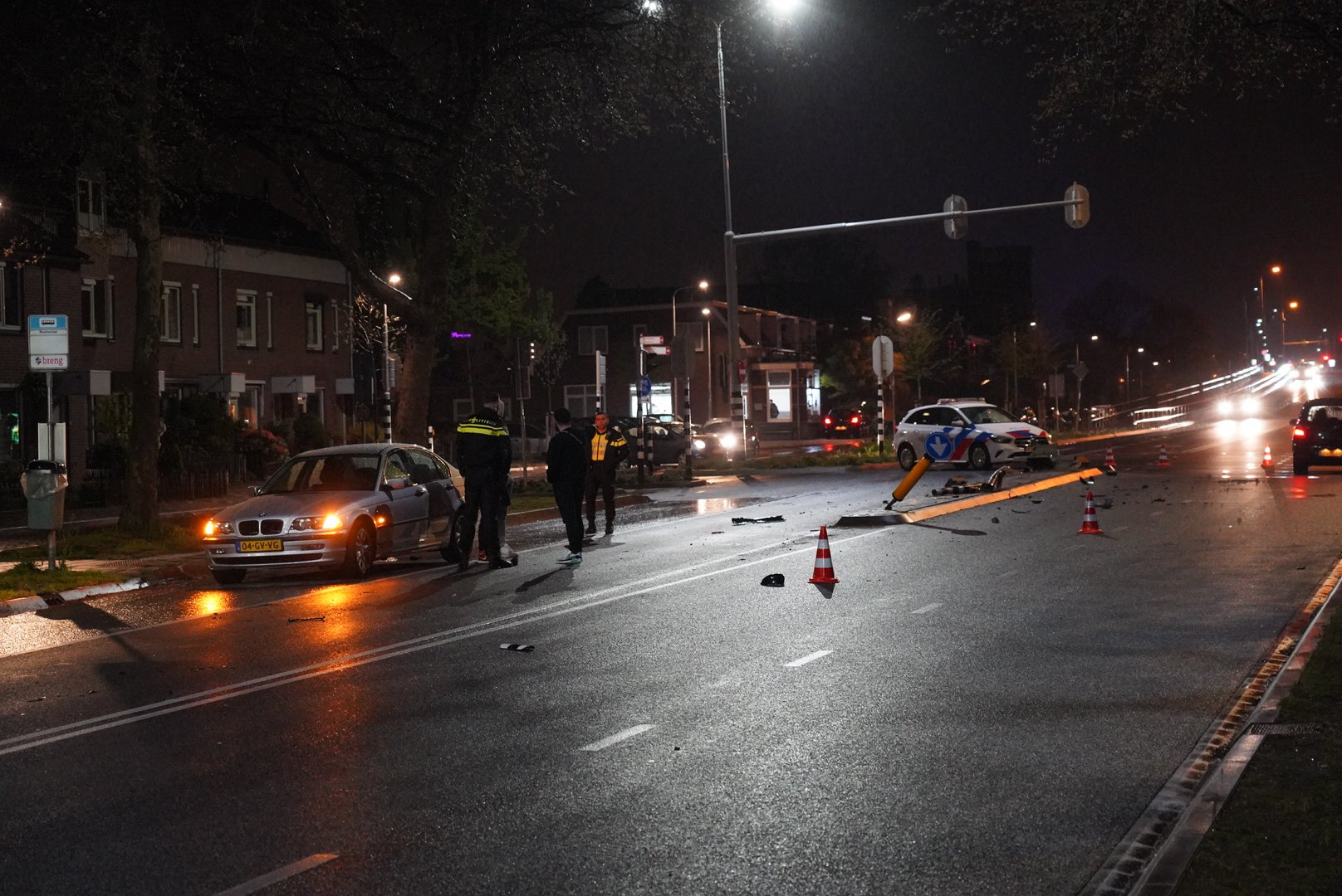 Het ongeval gebeurde rond 23:55 uur. Een getuige heeft laten weten dat de bestuurder van de zwarte auto is gevlucht, maar de politie wilde hierover geen mededelingen doen. Bij het ongeval is een stoplicht uit de grond gereden en heeft een auto een andere auto geraakt, waarbij lichte schade is ontstaan.