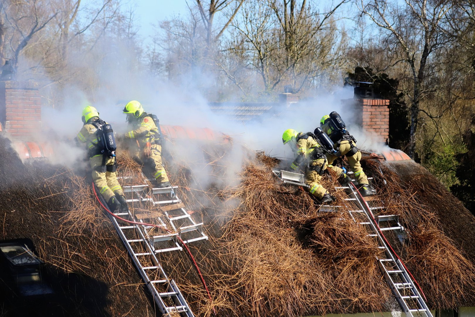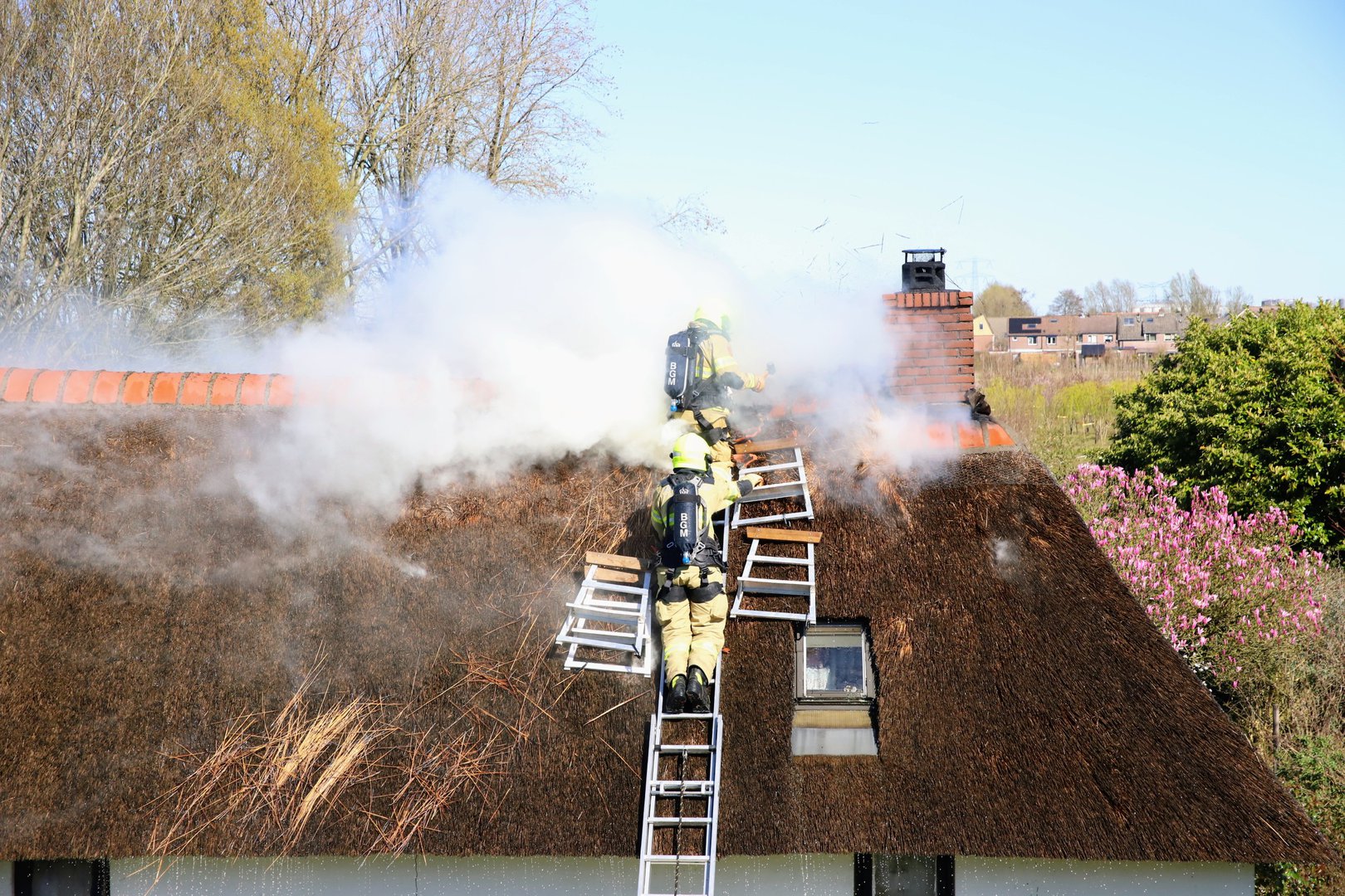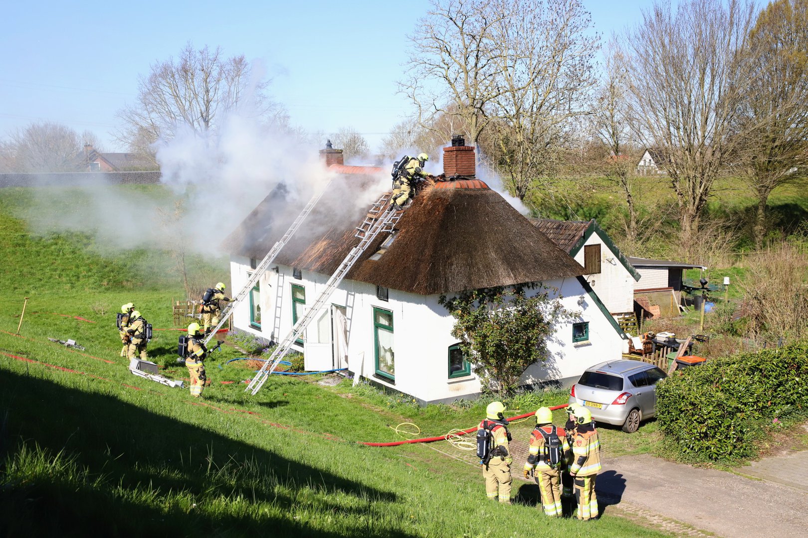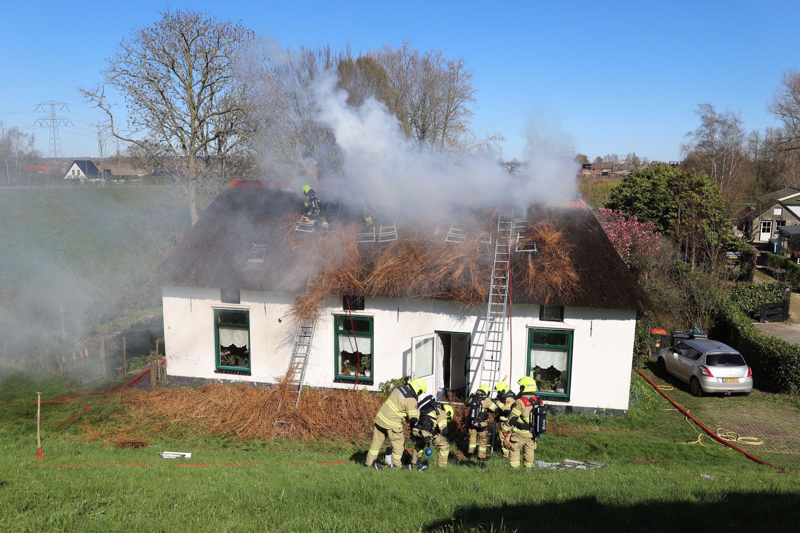 DODEWAARD – Maandagochtend woedt er een brand in het rieten dak van de woonboerderij op de Waalbandijk in Dodewaard.