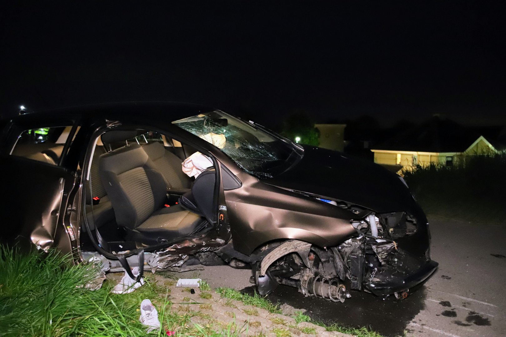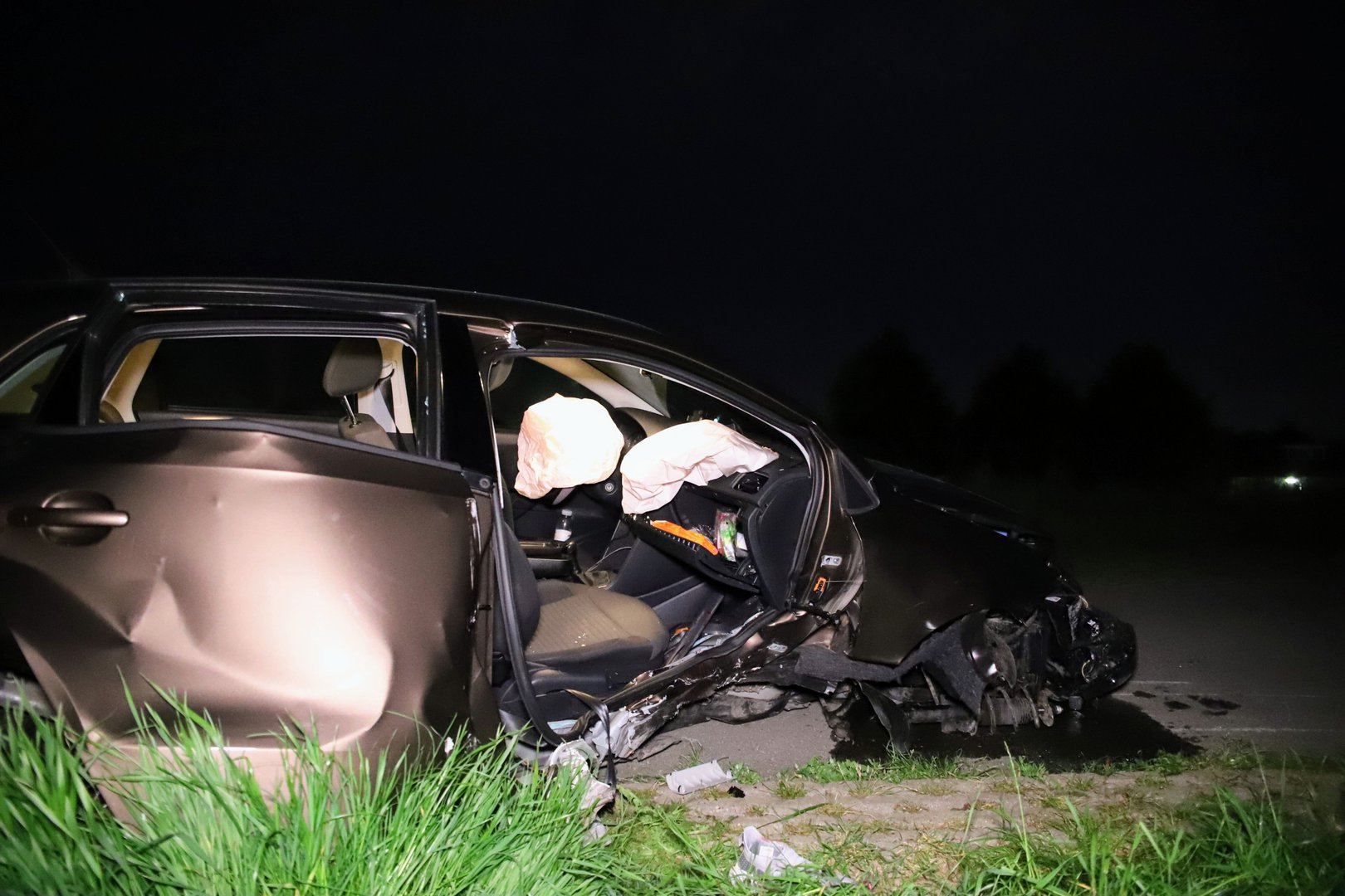 Door de harde klap werd een groot gedeelte van de rechterkant van het voertuig vernield. Zo brak het voorportier en voorwiel af en lagen er brokstukken over de weg en in de berm verspreid. De verkeersongevallen analyse is ter plaatse gekomen voor sporenonderzoek.
