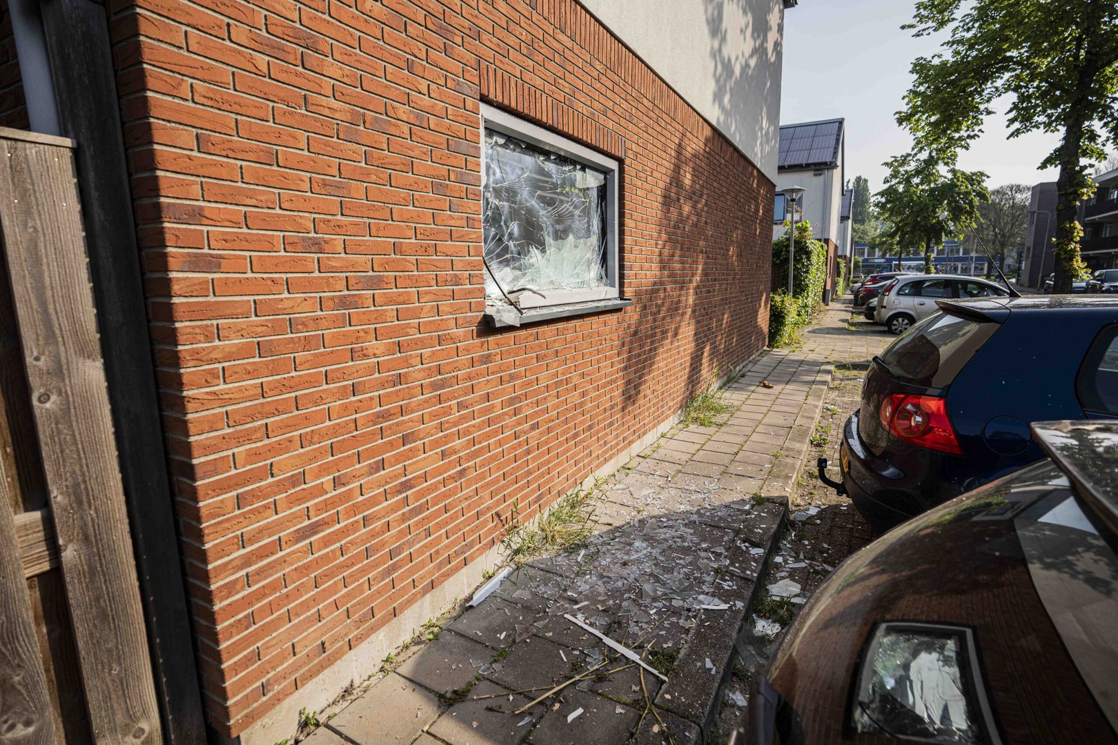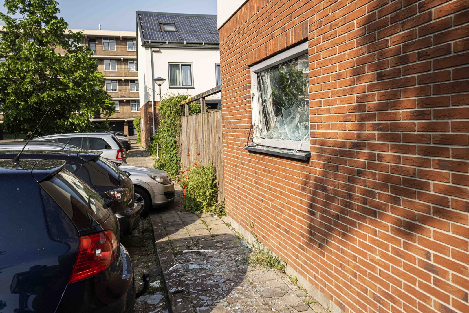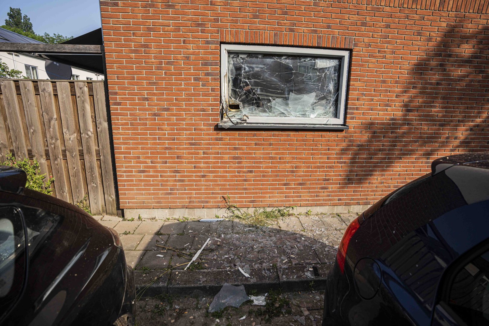 De zijraam van de woning is samen met het kozijn verloren gegaan door het explosief.