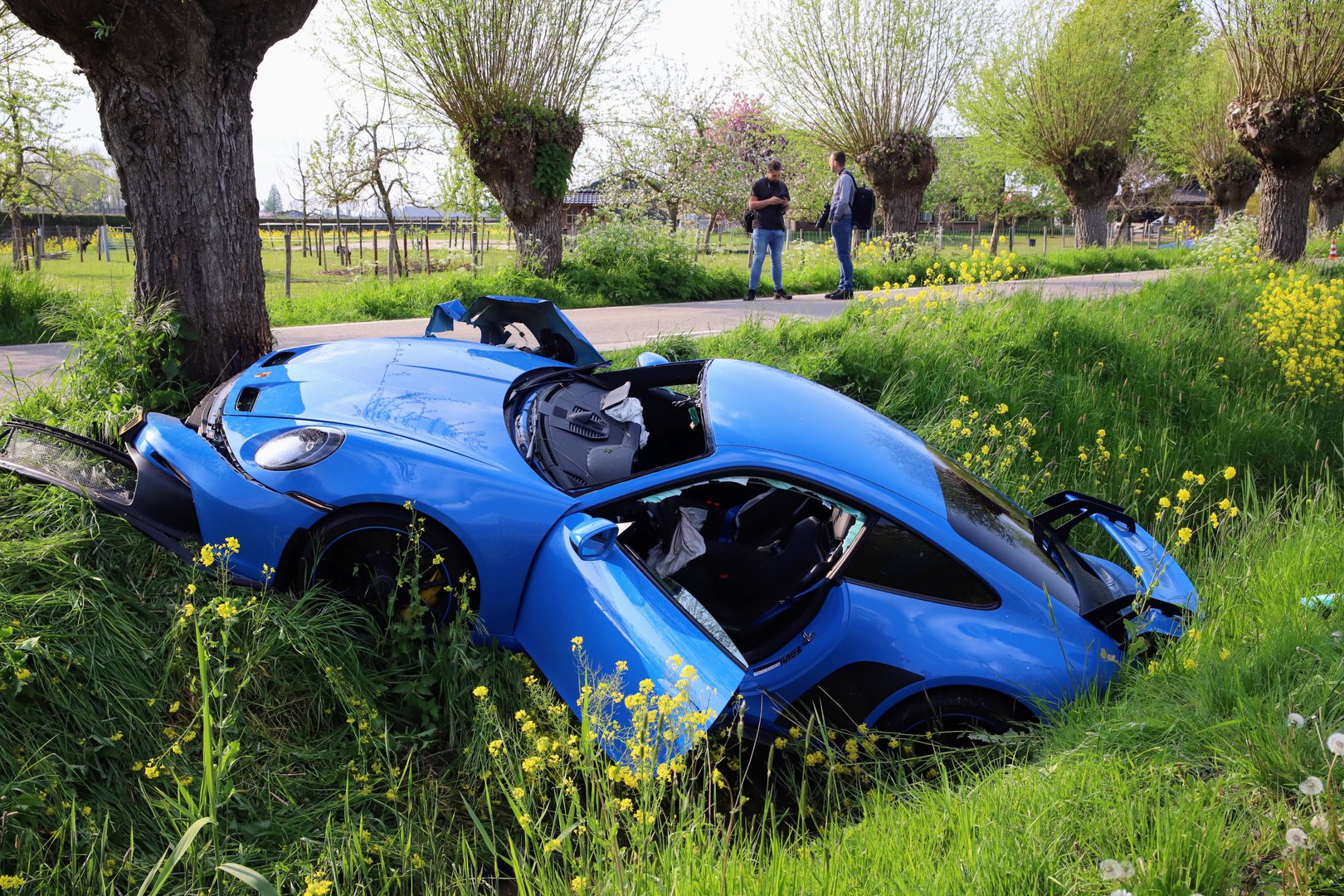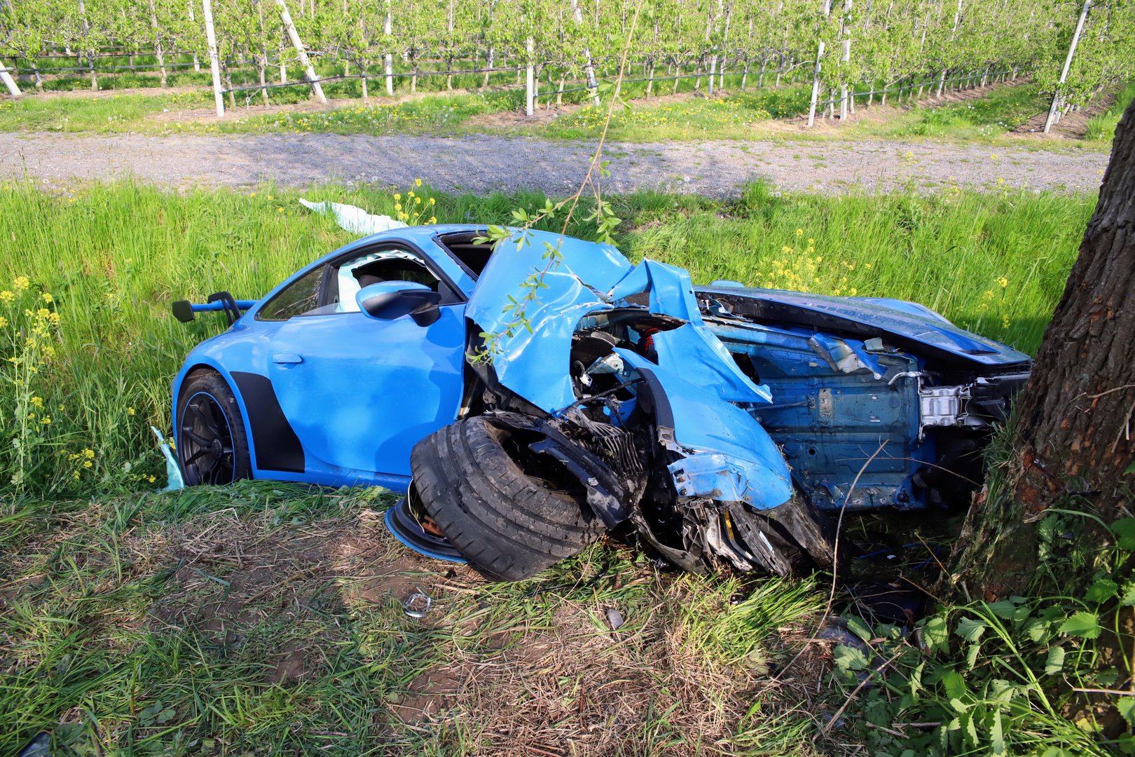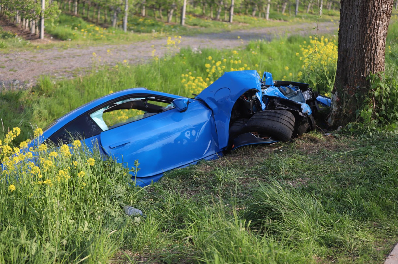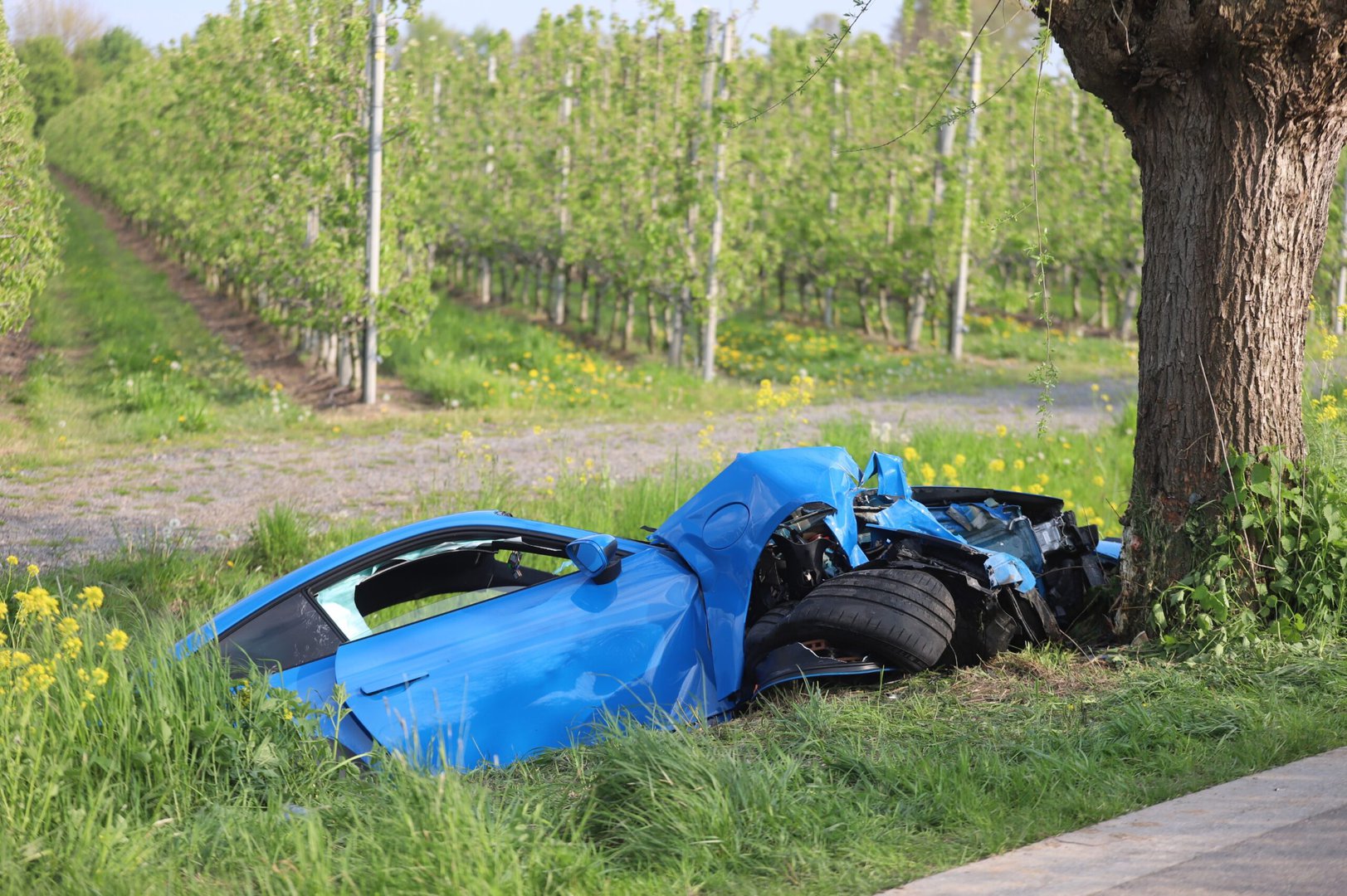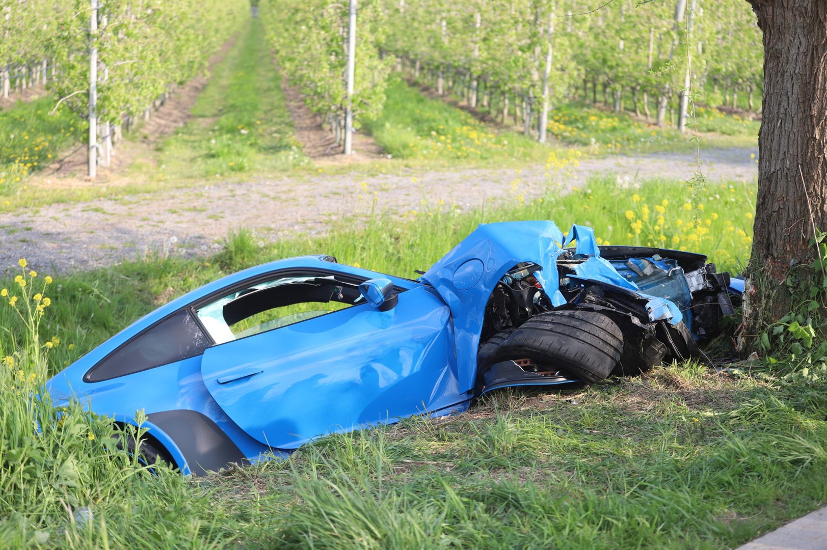 Porsche ter waarde van 275.000 euro total loss na crash tegen boom