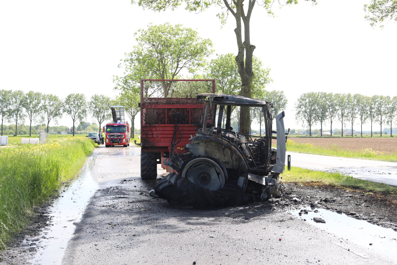 Een tractor met aanhanger raakte frontaal een boom, waarna het voertuig in brand vloog. De tractor is volledig uitgebrand. Daarnaast raakte één persoon ernstig gewond en is met spoed overgebracht naar het ziekenhuis.