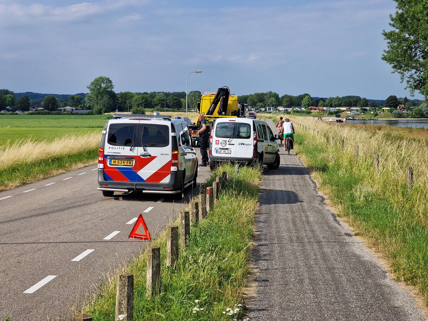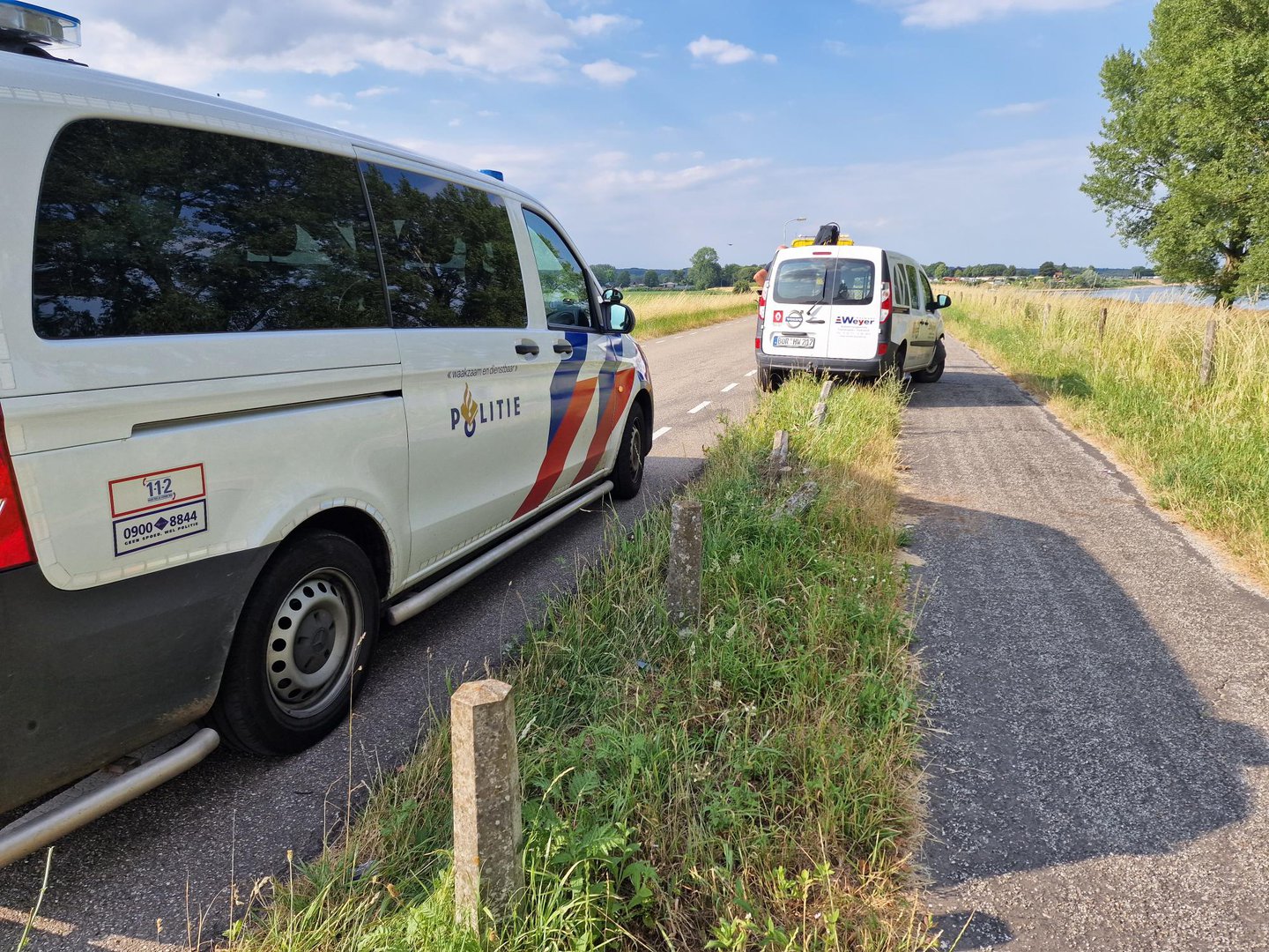 Terwijl hij onderweg was naar de jachthaven, moest hij uitwijken voor een tegenligger. Hierdoor verloor de bestuurder de controle over het stuur en botste hij met zijn auto tegen ongeveer 8 betonpaaltjes.