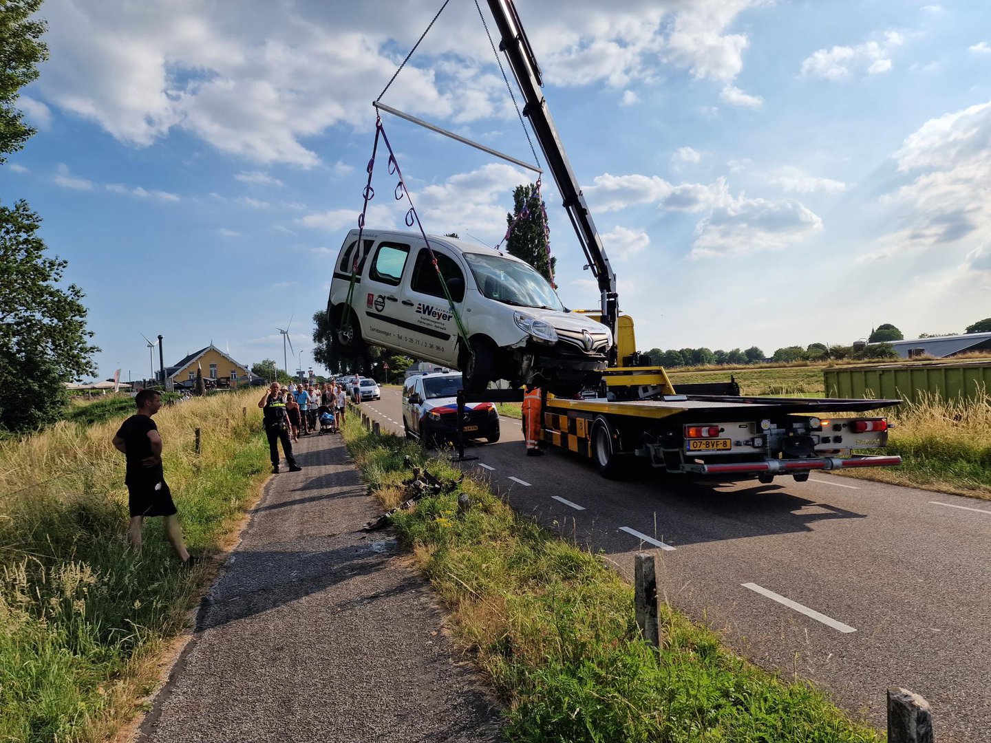 De auto zal door een sleepdienst worden weggehaald, omdat deze total loss is geraakt. Helaas is de tegenligger na het incident doorgereden.