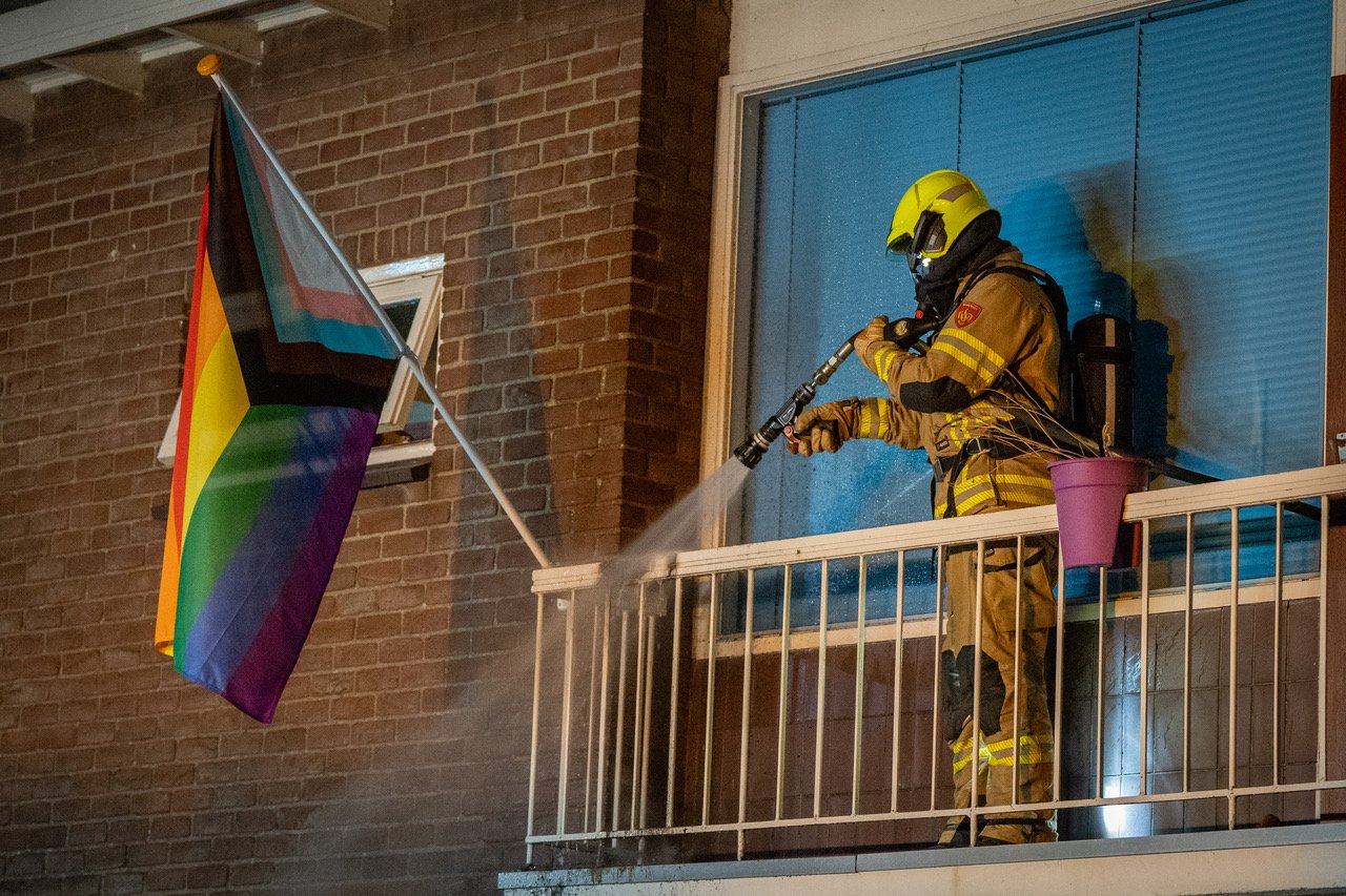 Omstreeks 1.30 uur kreeg de brandweer de melding van een woningbrand. Mensen in de woning hadden vuur opgemerkt op het balkon. Bij aankomst van de brandweer bleek een bloempot die aan het balkon was bevestigd in brand te staan. Kort is er gedacht aan brandstichting, ook in verband met de LHBTIQ+ vlag die aan de woning wappert. Bij onderzoek bleek dat een andere aanwezige in de woning de bloempot mogelijk gebruik heeft als asbak waarna het potgrond brand heeft gevat.